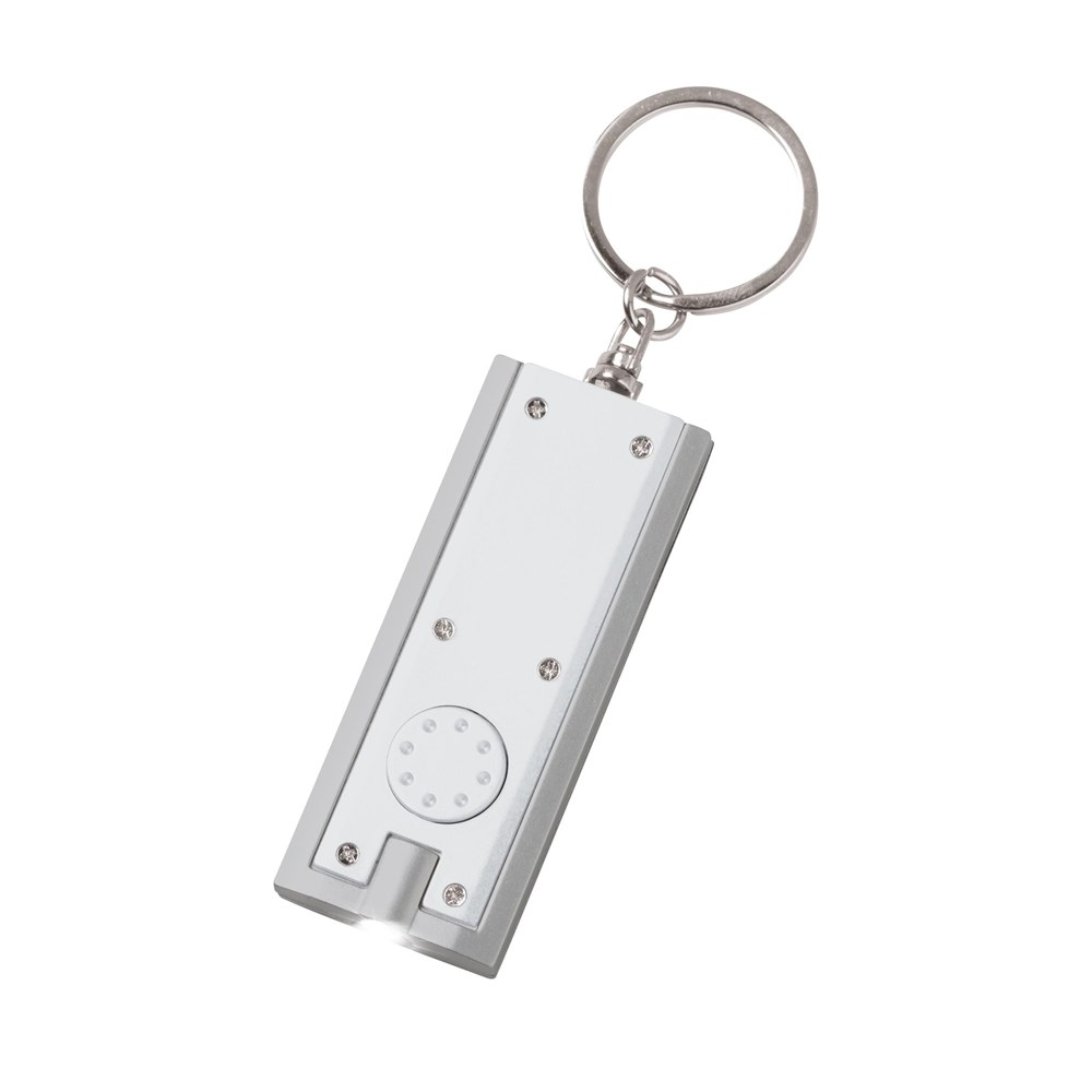 Sleutelhanger met felwit LED-lampje, incl. celbatterijen.