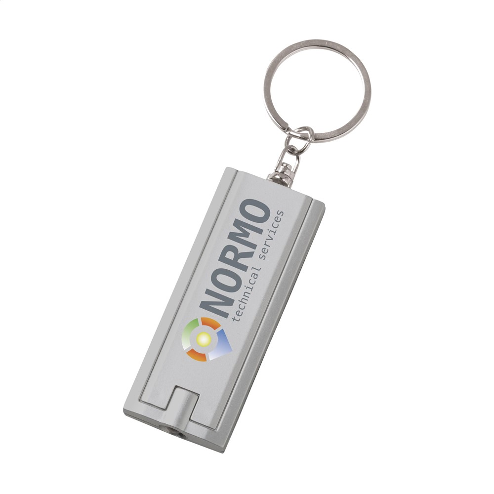 Sleutelhanger met felwit LED-lampje, incl. celbatterijen.