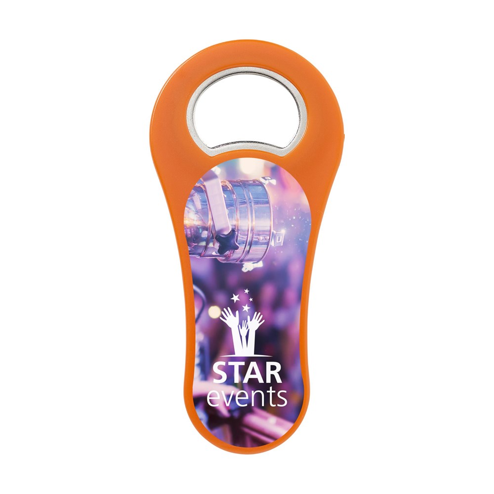 Flesopener met magneet in de achterzijde. Ook te bedrukken met je eigen foto, logo of zelfontworpen design in full colour. Zeer geschikt om te verzenden met een direct mail.