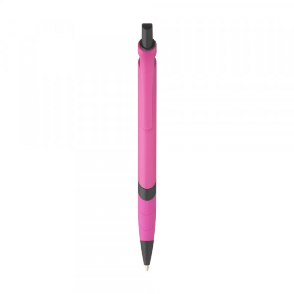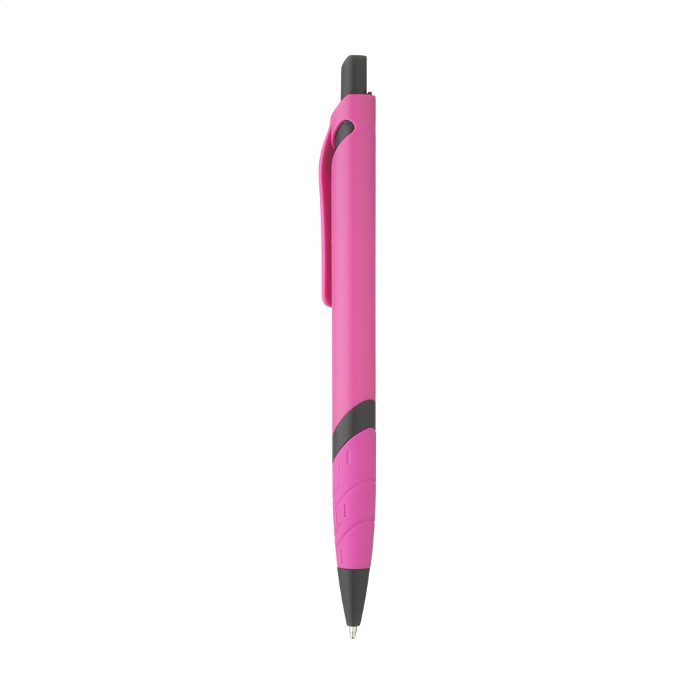 Blauwschrijvende balpen met mooie matte houder, zwarte accenten en gripvast, rubberen voorstuk.
