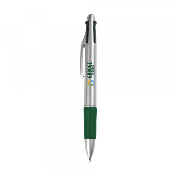4-kleurenbalpen met gripvast, rubberen voorstuk. Voorzien van een blauwe, groene, rode en zwarte vulling.