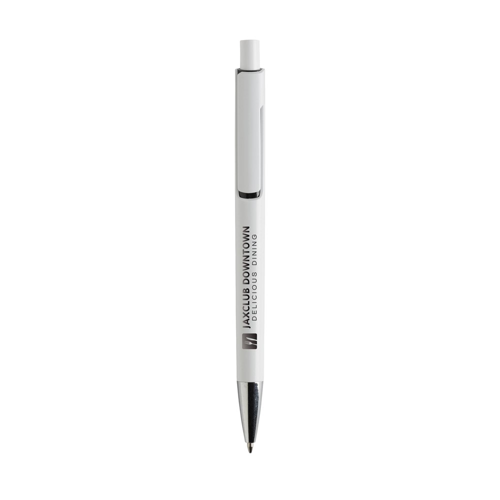 Blauwschrijvende balpen met uniek design: de body en clip van deze balpen zijn uit één geheel vormgegeven en dat maakt deze pen tot een bijzondere eyecatcher. Met opvallend kleuraccent onder de optisch 'zwevende' clip.