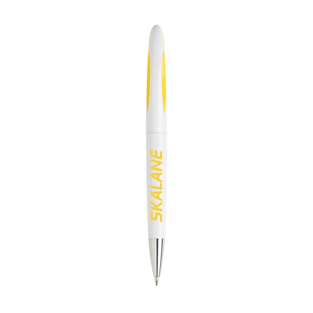 Blauwschrijvende balpen met fraai vormgegeven clip voorzien van een opvallend kleuraccent en draaikliksysteem.
