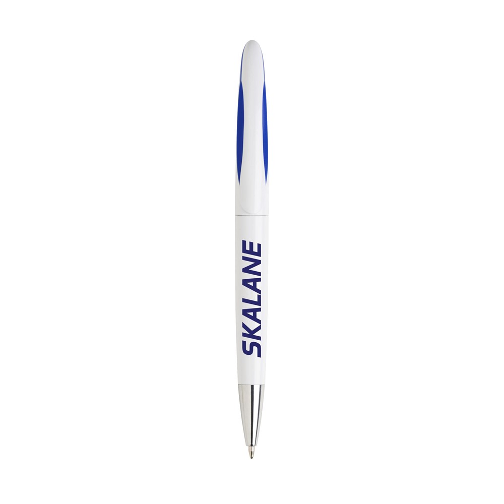 Blauwschrijvende balpen met fraai vormgegeven clip voorzien van een opvallend kleuraccent en draaikliksysteem.