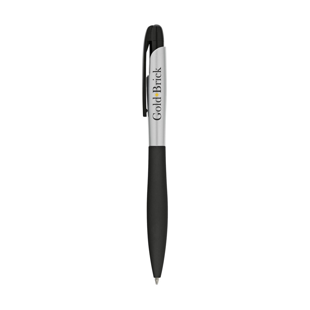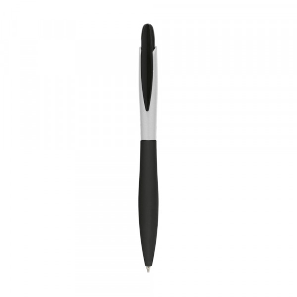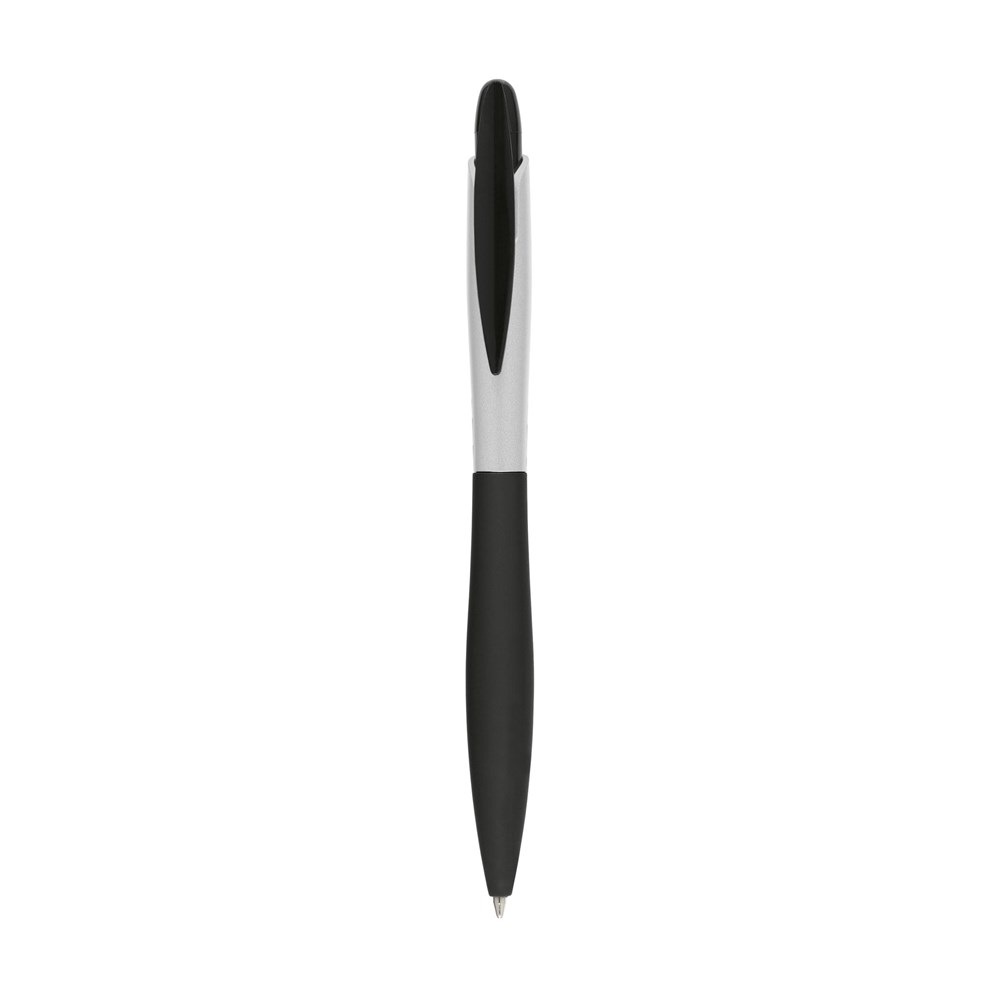 Blauwschrijvende, slanke balpen met gripvast, rubberen voorstuk.