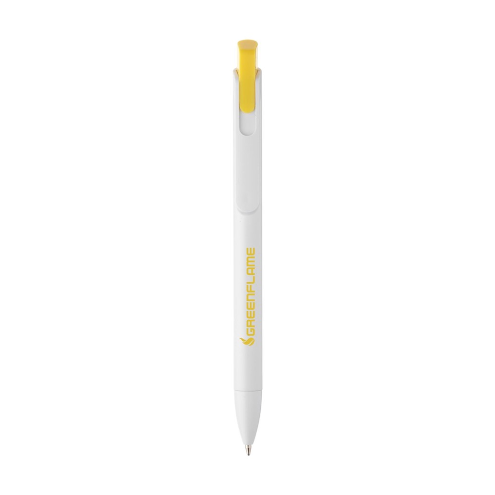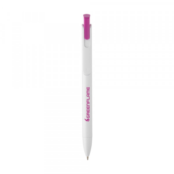 Blauwschrijvende balpen in matt finish. Met opmerkelijke clip en drukknop die perfect op elkaar aansluiten.