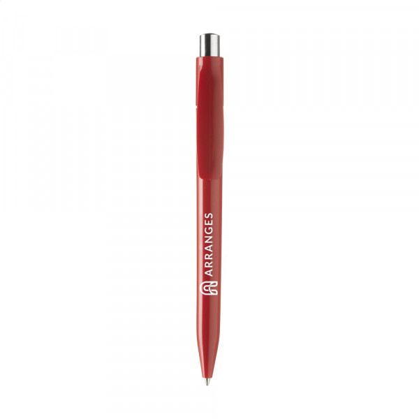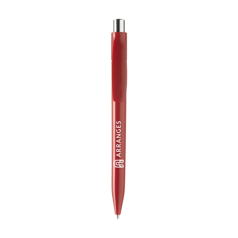 Blauwschrijvende balpen. Met matchend kleuraccent in de zilverkleurige drukknop.