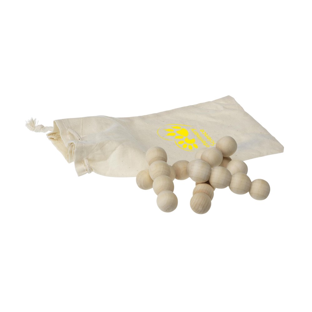 Houten puzzel, incl. handleiding. In katoenen zak.