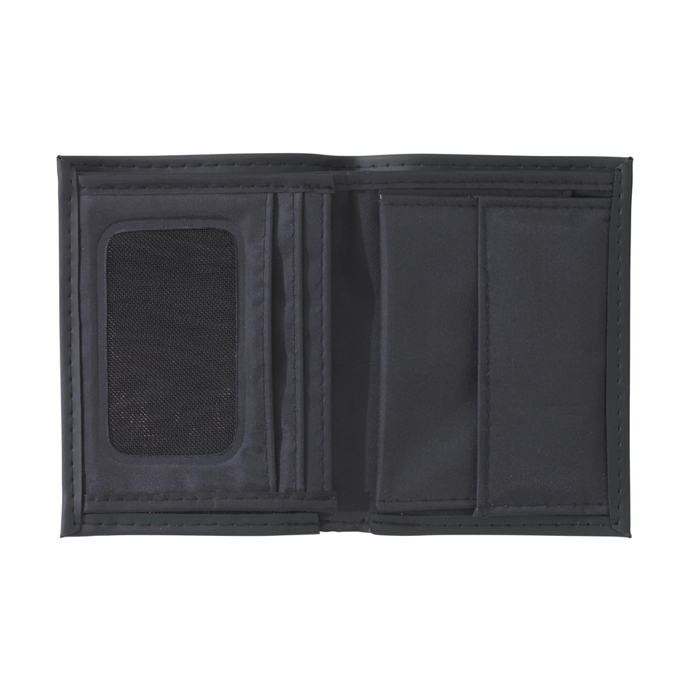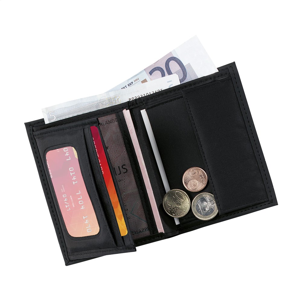 Portefeuille van imitatieleer, met insteekvakken en muntvak.
