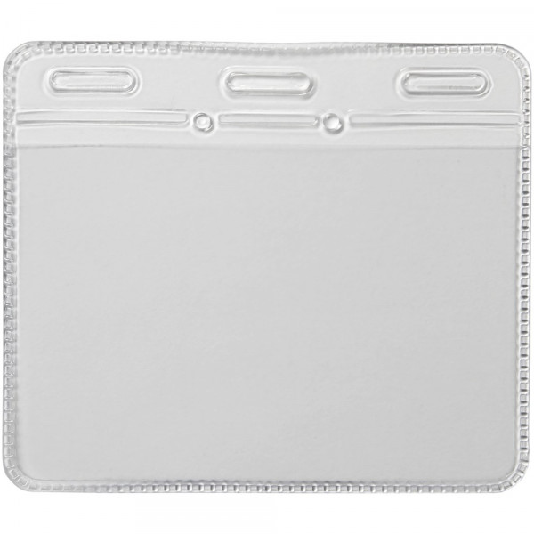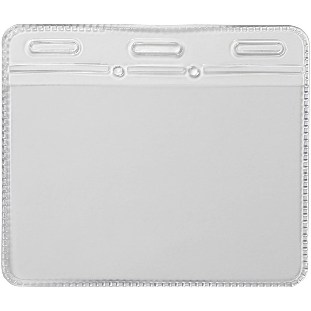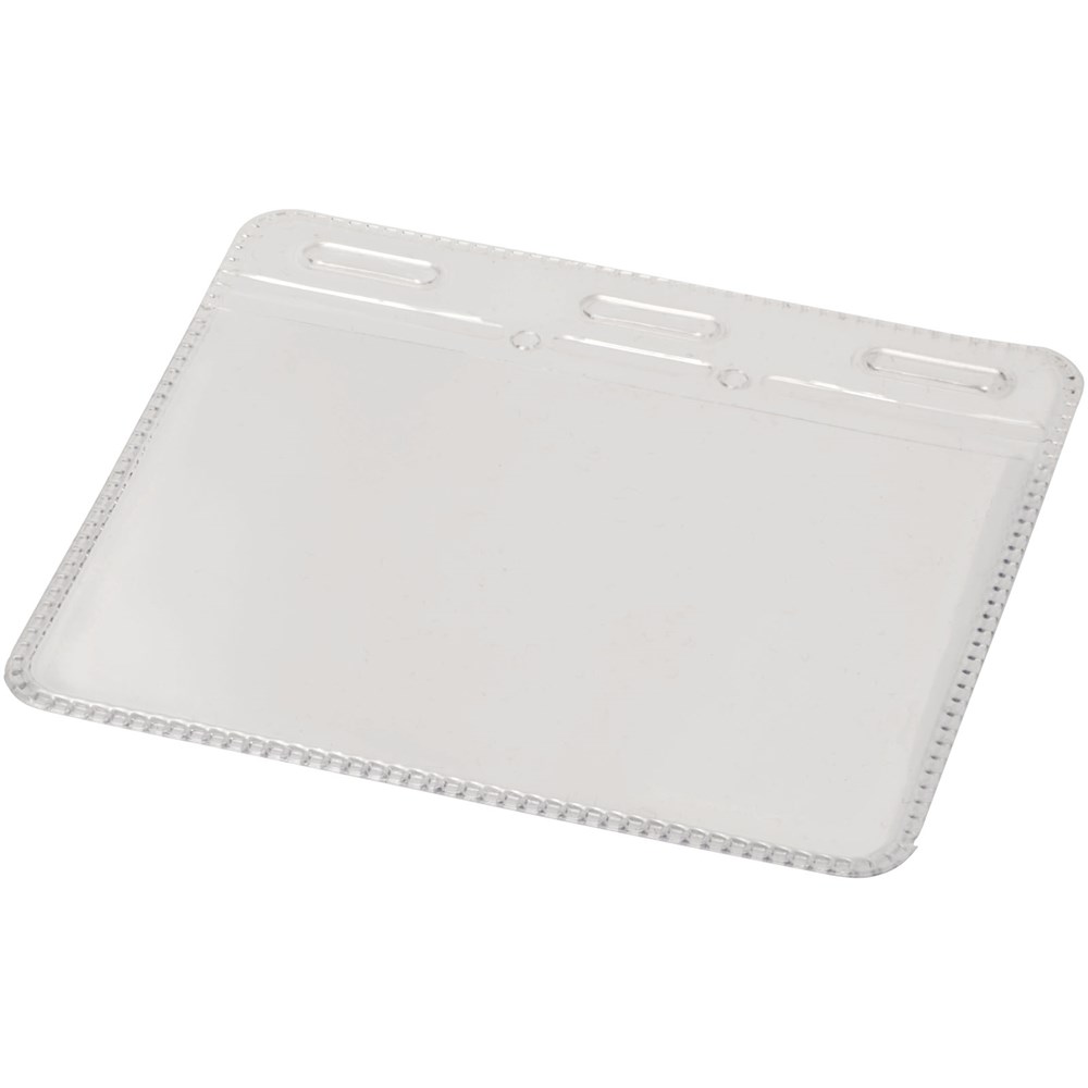 Badgehouder met inzetstuk aan de achterkant en opening aan de bovenkant om vast te maken aan een koord of rollerclip.
