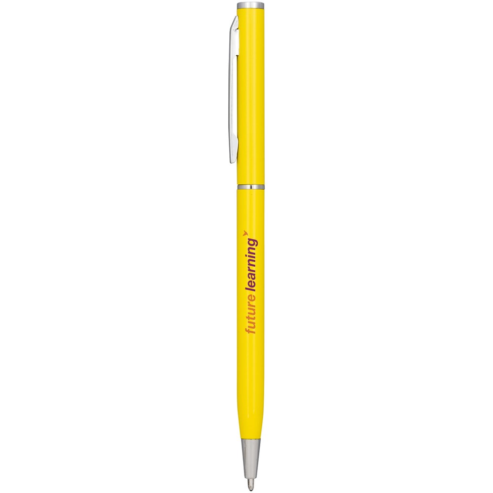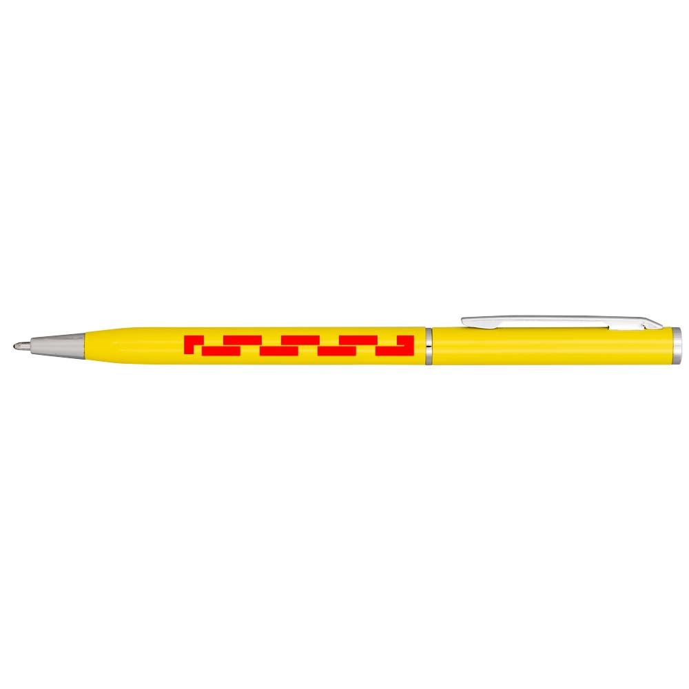 Slanke aluminium geglazuurde balpen met draaimechanisme.