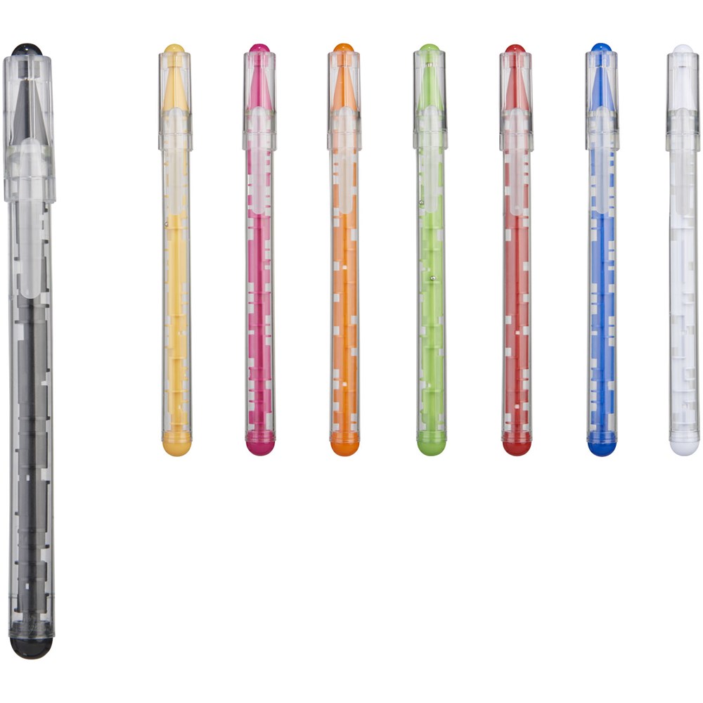 De perfecte balpen om stress of verveling weg te friemelen. Rol een van de twee ballen naar het einde van het doolhof en schrijf je een weg naar concentratie en ontspanning.
