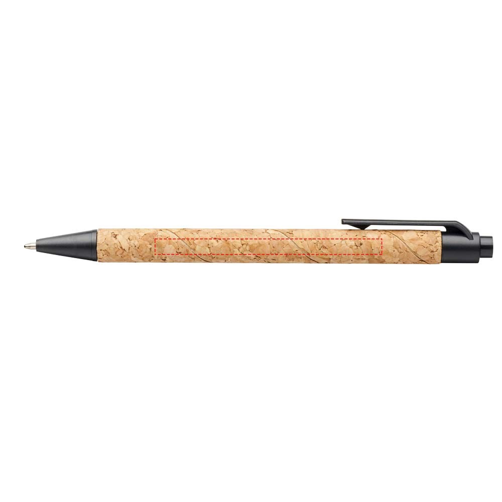 Ecovriendelijke balpen met klikmechanisme, met een huls van kurk en tarwestrostro in verschillende kleuren. Tarwestro blijft over na het oogsten van de tarwekorrels. Dit vermindert het gebruik van plastic, wat een milieuvriendelijk alternatief biedt. De kleur van het kurkmateriaal kan variëren.