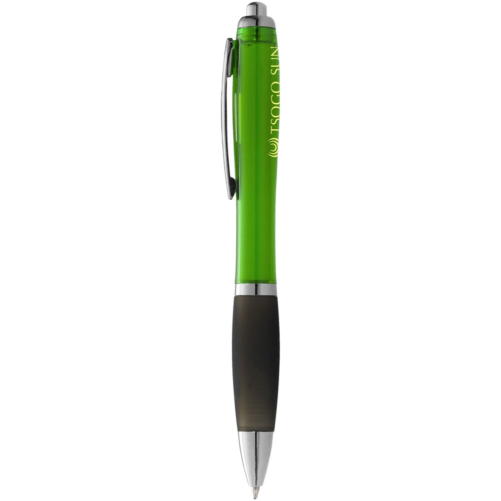 Balpen met klikmechanisme en soft touch greep. Zwart transparant Blauwschrijvend.