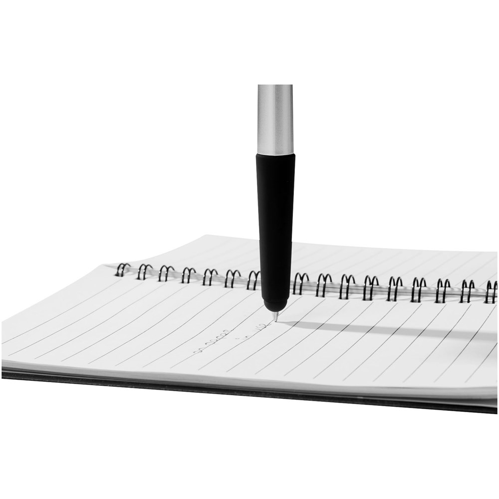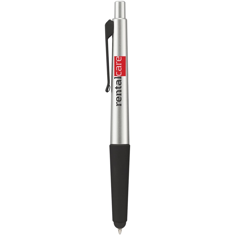 Stylus balpen met klikmechanisme en soft touch grip. Zwartschrijvend.