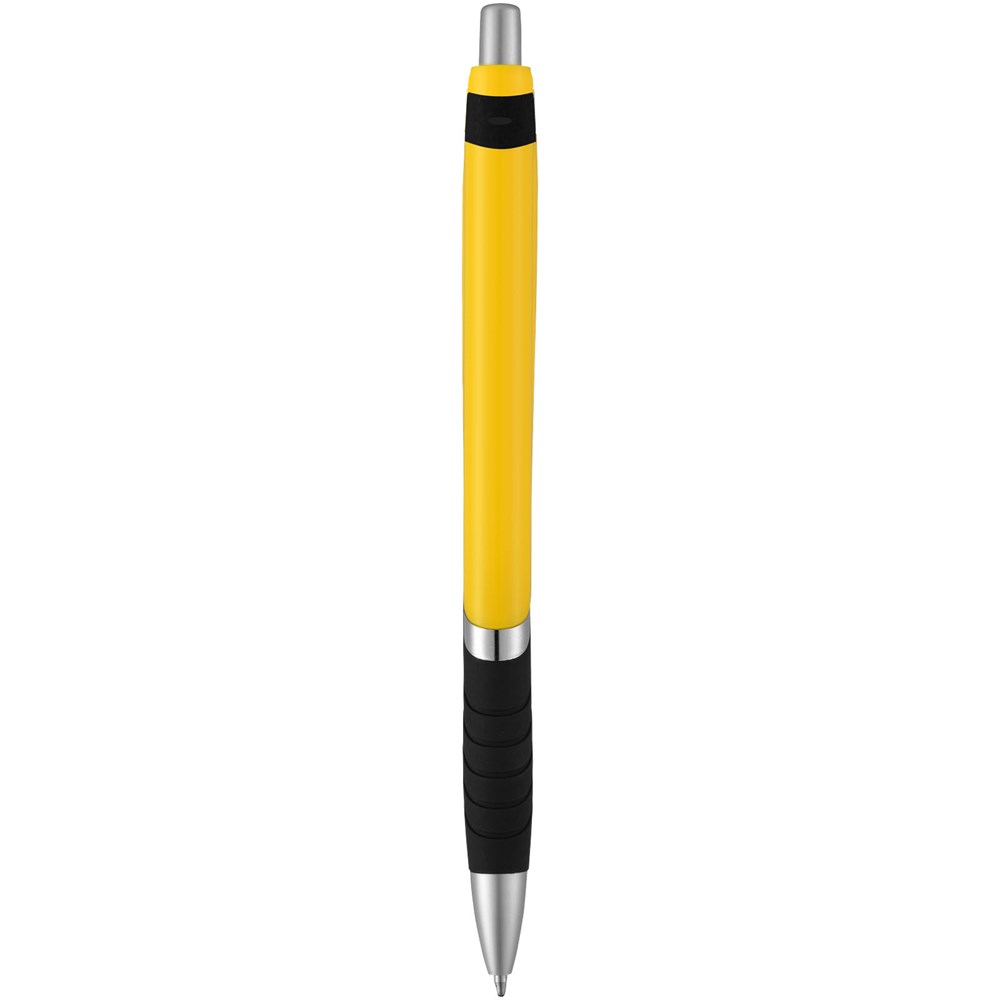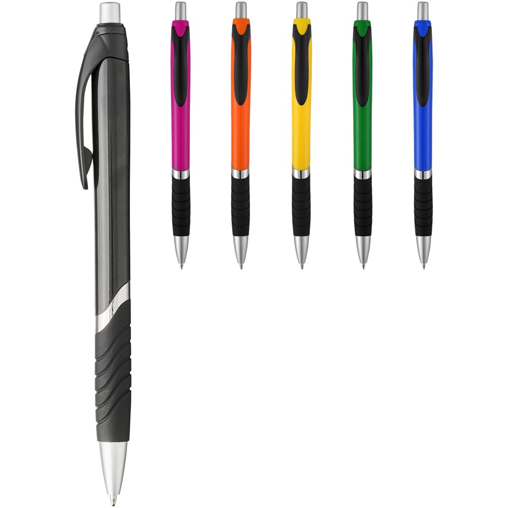 Balpen met klikmechanisme en rubberen greep. Zwartschrijvend.