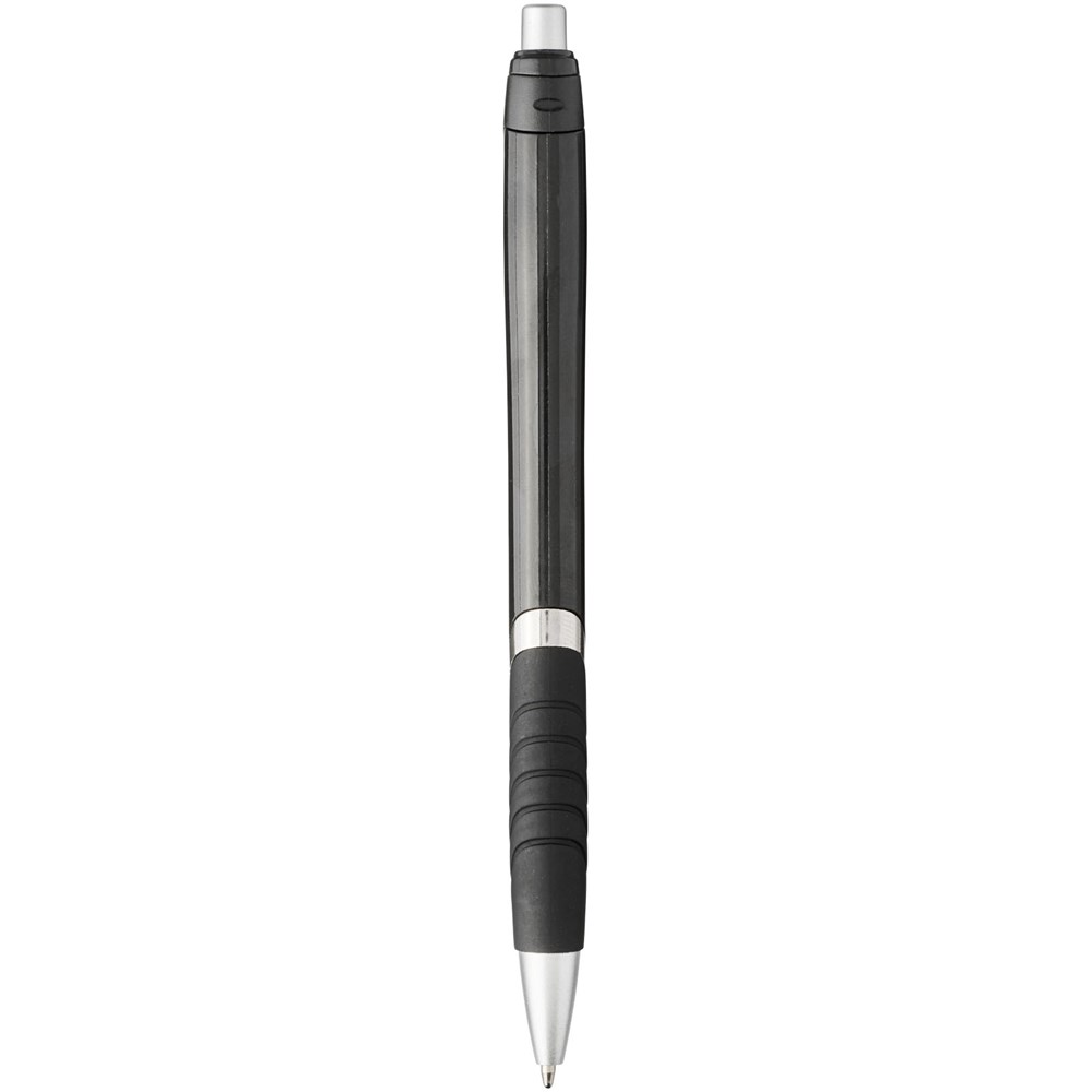 Balpen met klikmechanisme en rubberen greep. Zwartschrijvend.