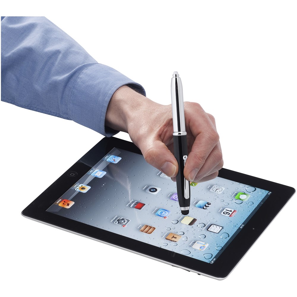 Stylus balpen met enkele LED zaklamp en afneembare dop. Zwartschrijvend. Inclusief batterijen.meer