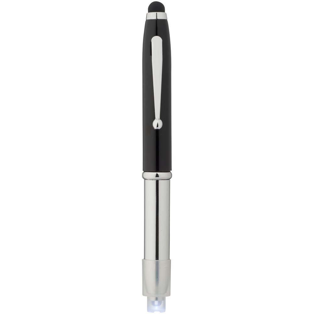 Stylus balpen met enkele LED zaklamp en afneembare dop. Zwartschrijvend. Inclusief batterijen.