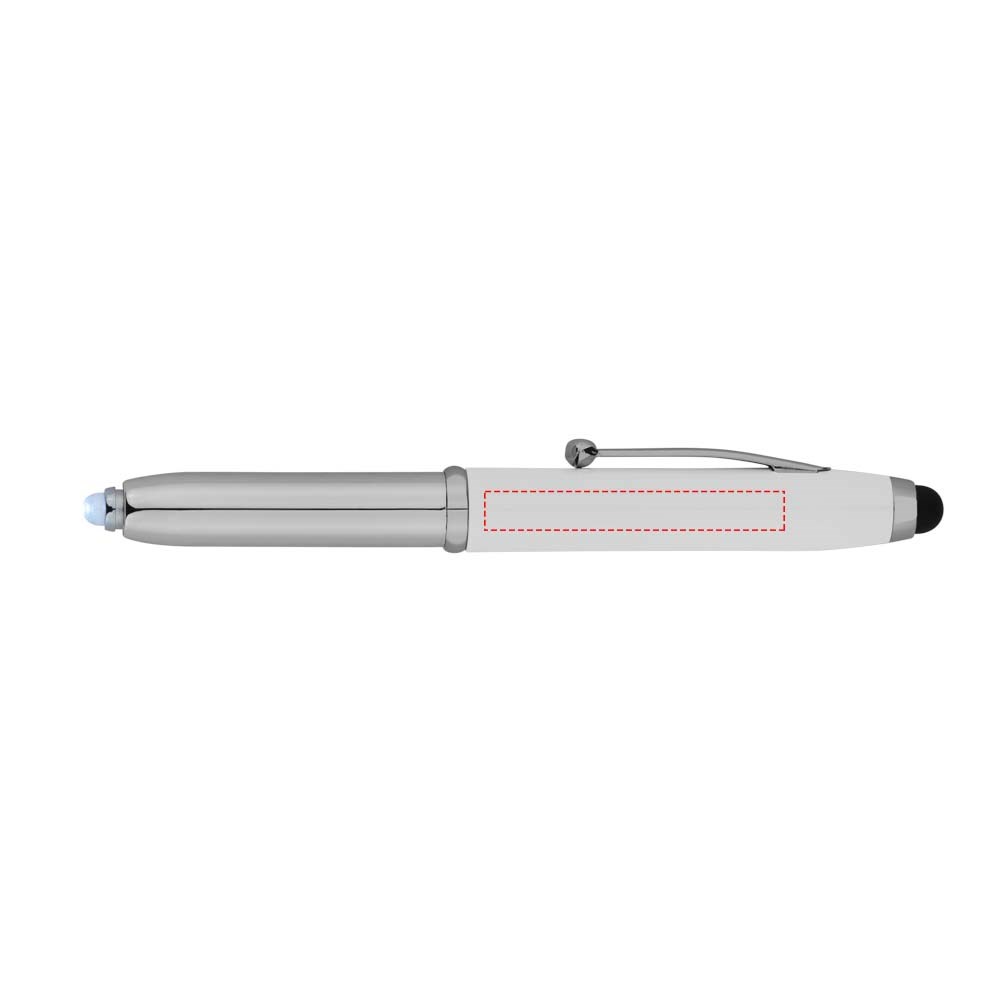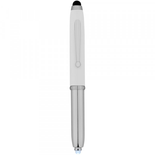 Stylus balpen met enkele LED zaklamp en afneembare dop. Zwartschrijvend. Inclusief batterijen.meer