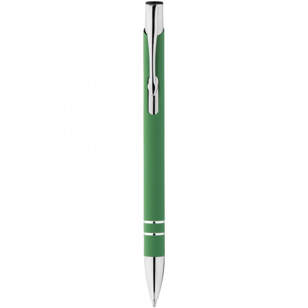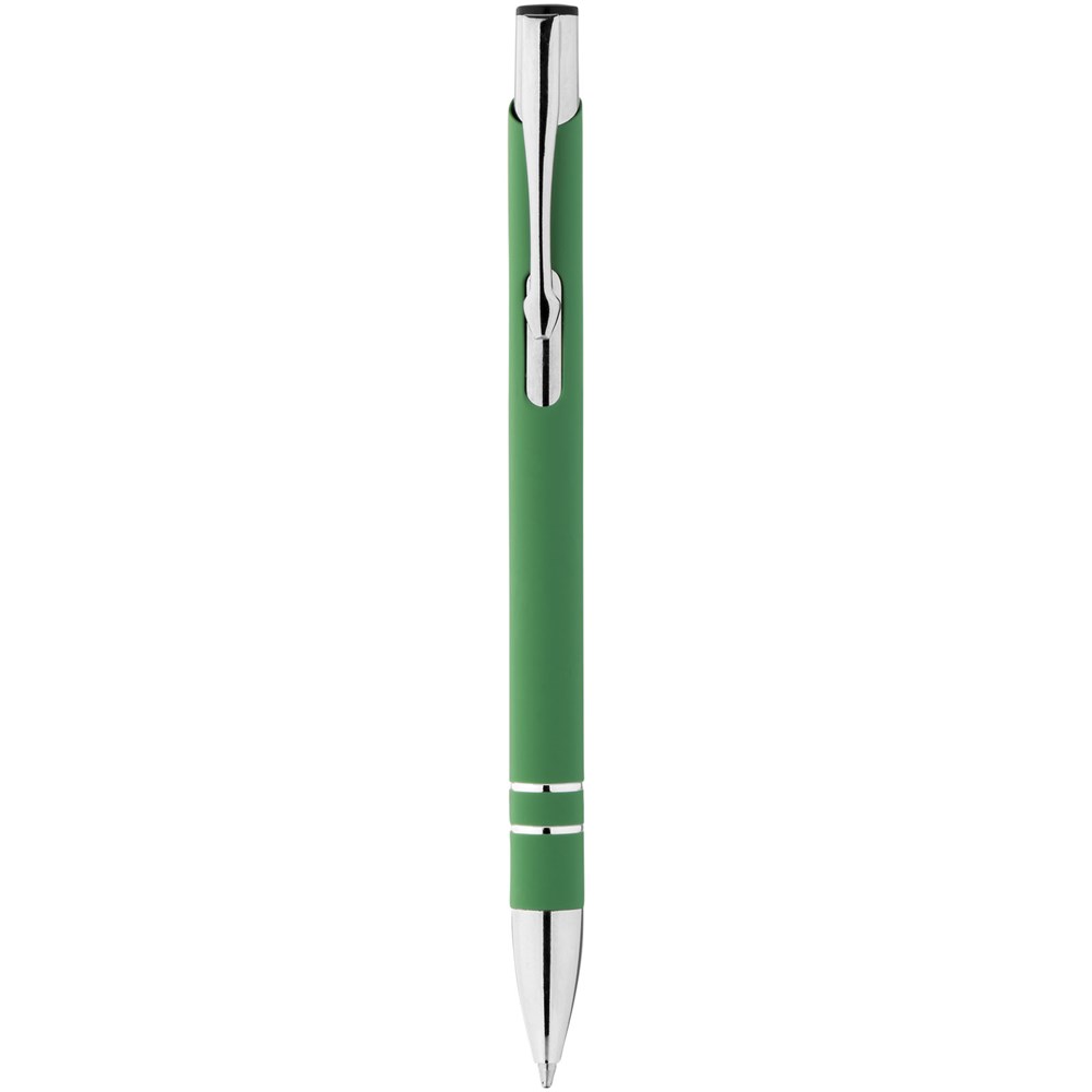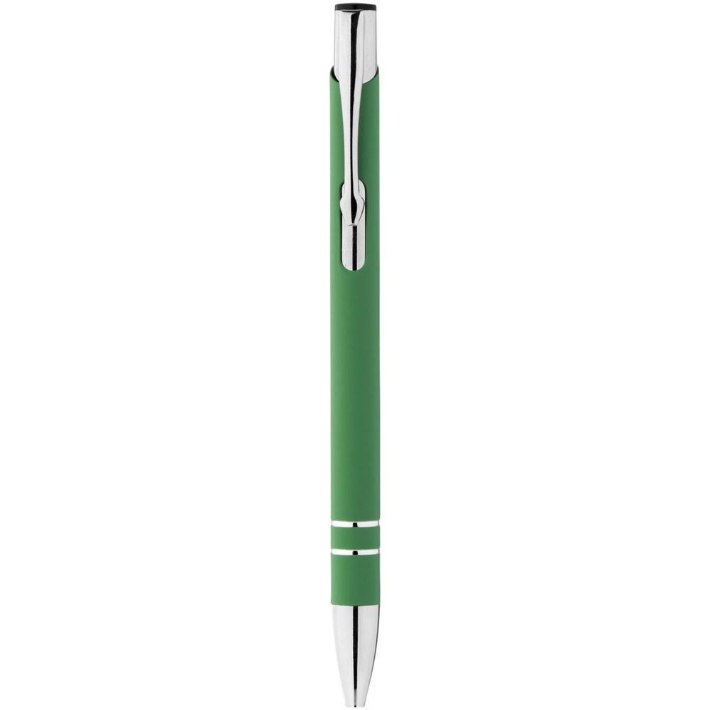 Rubber gecoate balpen met klikmechanisme. Zwartschrijvend.