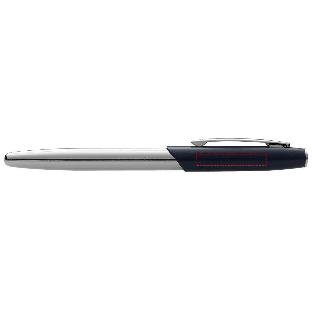Balpen met verfijnd silhouet. De bovenkant van de schacht is mat, de onderkant is van glanzend chroom. Bijpassende chroom accenten. Zwartschrijvend. Geleverd in fluwelen hoes en Avenue geschenkverpakking (16 x 2,5 x 1,5 cm).