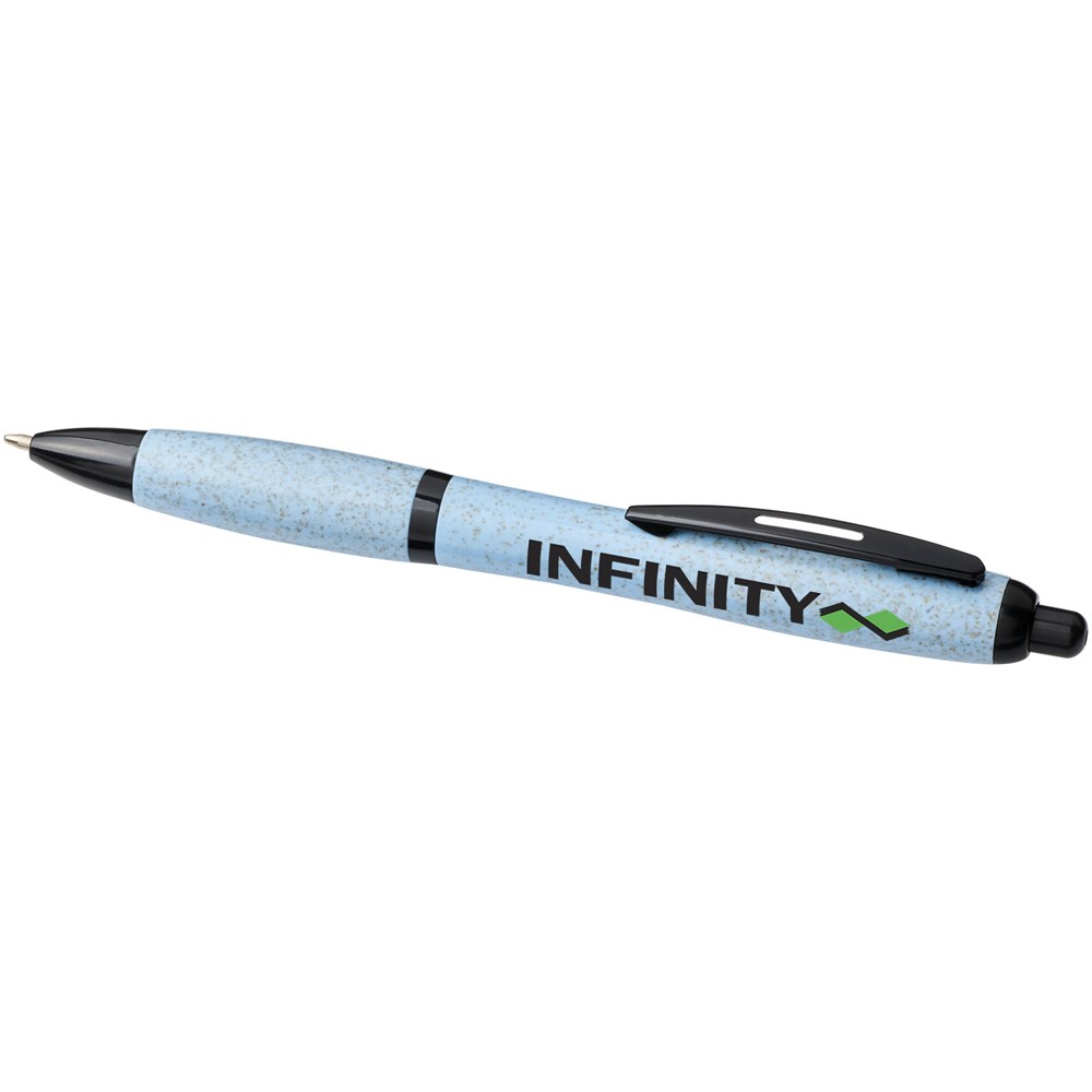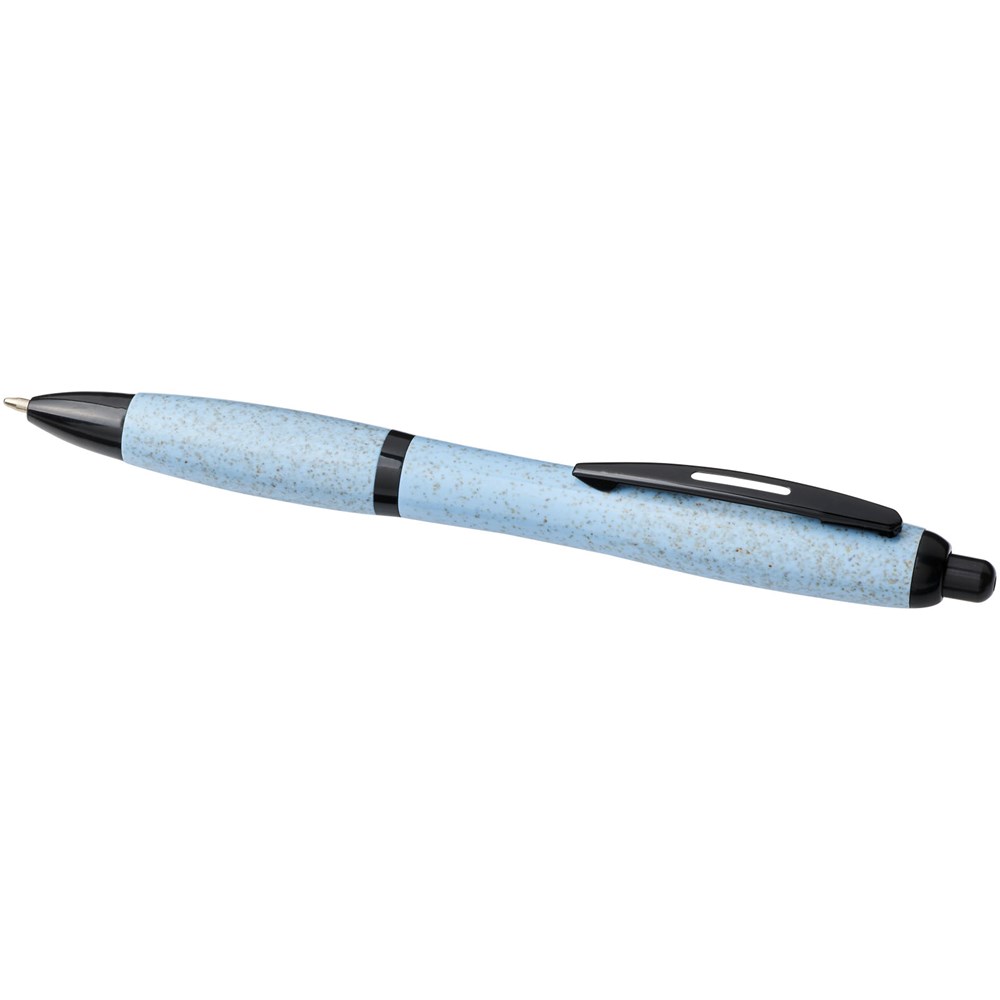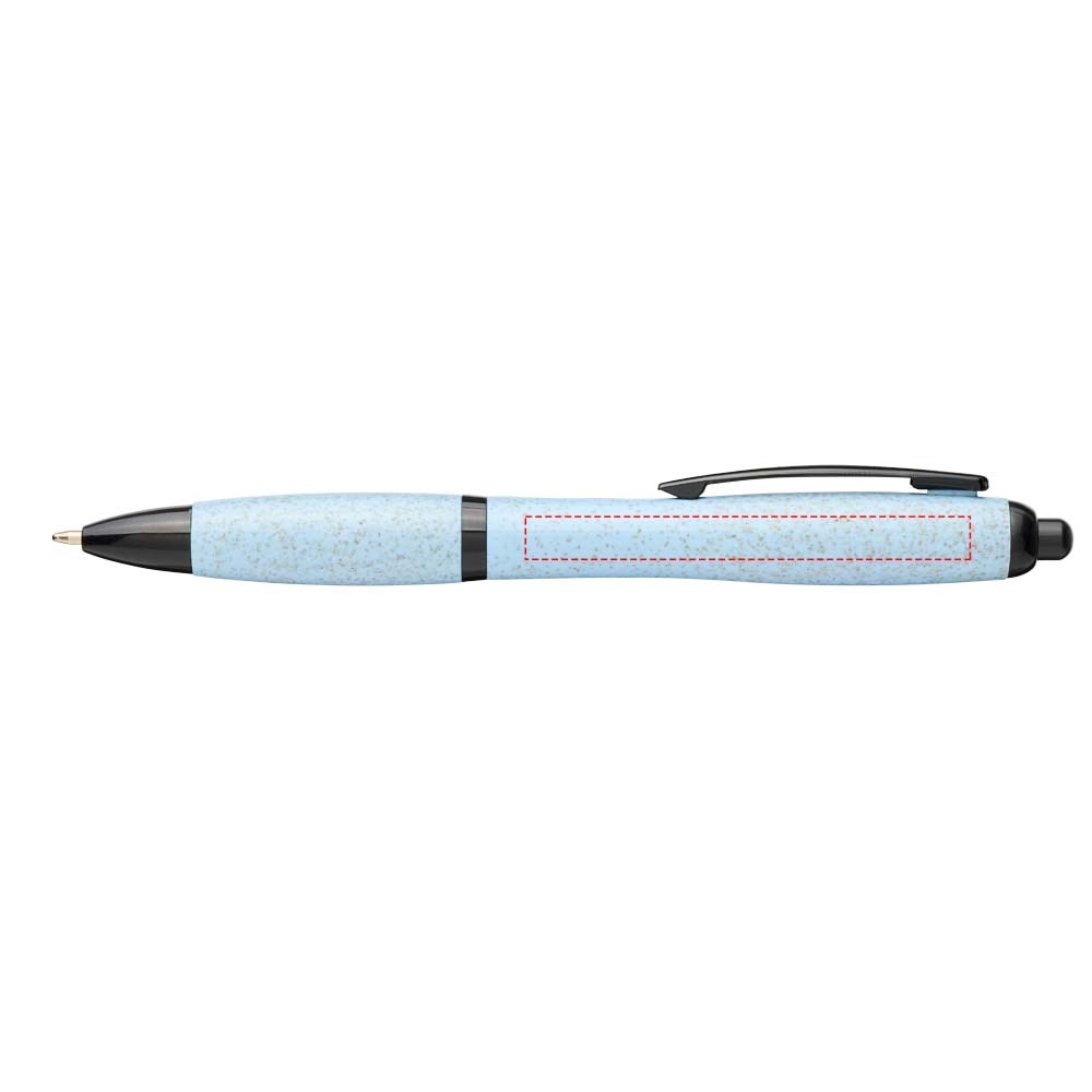 Balpen met klikmechanisme, met een huls van tarwestro en afgewerkt met effen zwarte details. Na het oogsten van de tarwekorrels blijft er tarwestro over, waardoor er minder plastic wordt gebruikt.