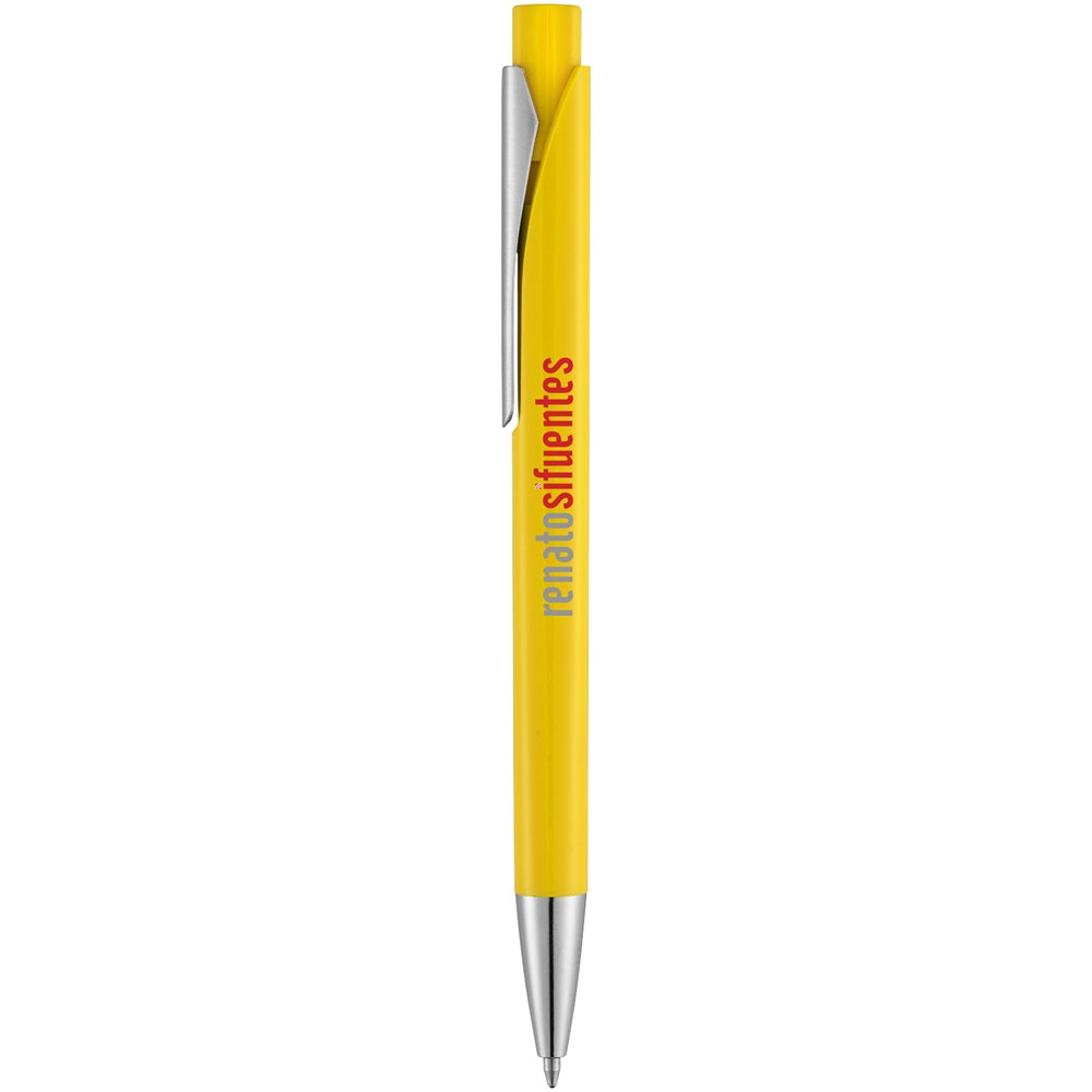 Balpen met afgevlakte schacht en klikmechanisme. Blauwschrijvend.