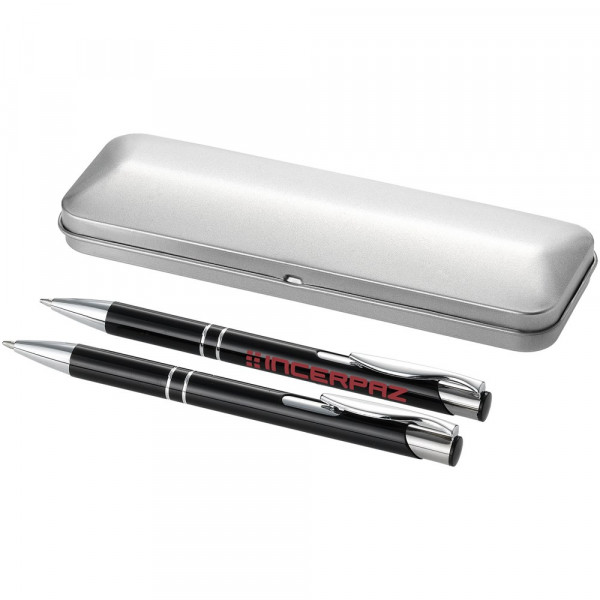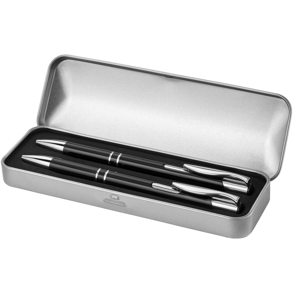 Balpen en vulpotlood in geschenkblik met EVA inlay. Zwartschrijvend.