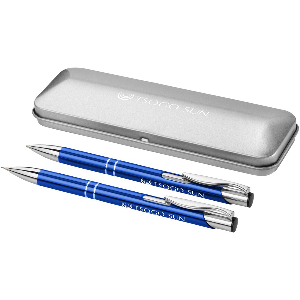 Balpen en vulpotlood in geschenkblik met EVA inlay. Zwartschrijvend.