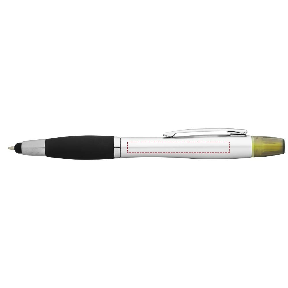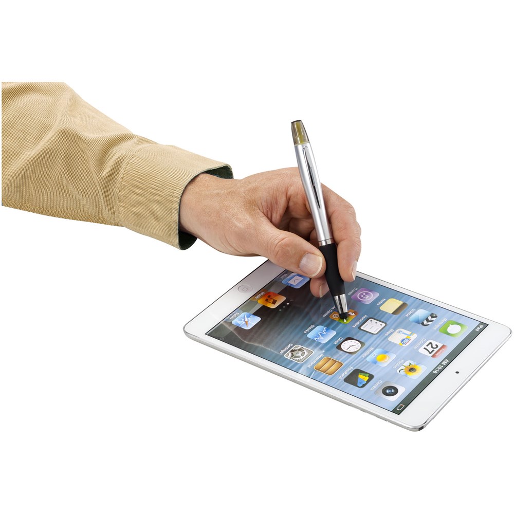 Stylus balpen met draaimechanisme, markeerstift en soft touch greep. Zwartschrijvend.