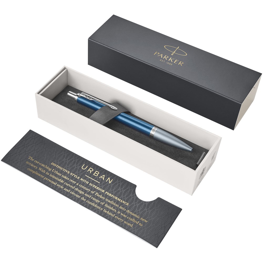 Kenmerkende stijl met opmerkelijke prestaties. De opvallende Urban brengt meer dan een eeuw aan Parker traditie mee naar een dynamisch nieuw territorium. Met zijn unieke gewelfde design en een scala aan afwerkingen is hij vervaardigd als aanvulling op uw persoonlijke stijl en voor meer zelfvertrouwen achter elk woord. Inclusief Parker geschenkverpakking. Geleverd met gepatenteerde QuinkFlow balpennavulling. Exclusief ontwerp.