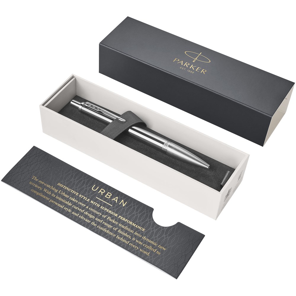 Kenmerkende stijl met opmerkelijke prestaties. De opvallende Urban brengt meer dan een eeuw aan Parker traditie mee naar een dynamisch nieuw territorium. Met zijn unieke gewelfde design en een scala aan afwerkingen is hij vervaardigd als aanvulling op uw persoonlijke stijl en voor meer zelfvertrouwen achter elk woord. Inclusief Parker geschenkverpakking. Geleverd met gepatenteerde QuinkFlow balpennavulling. Exclusief ontwerp.