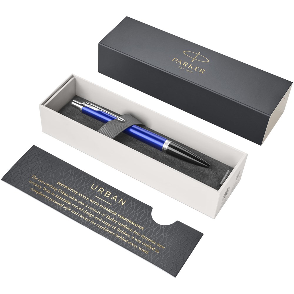 Kenmerkende stijl met opmerkelijke prestaties. De opvallende Urban brengt meer dan een eeuw aan Parker traditie mee naar een dynamisch nieuw territorium. Met zijn unieke gewelfde design en een scala aan afwerkingen is hij vervaardigd als aanvulling op uw persoonlijke stijl en voor meer zelfvertrouwen achter elk woord. Inclusief Parker geschenkverpakking. Geleverd met gepatenteerde QuinkFlow balpennavulling. Exclusief ontwerp.