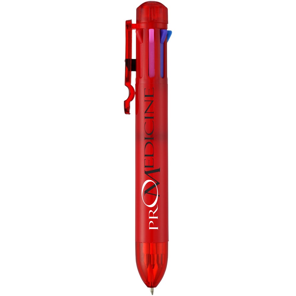 Meerkleurenbalpen met klikmechanisme. Acht kleuren inkt – zwart, blauw, groen, oranje, roze,...meer