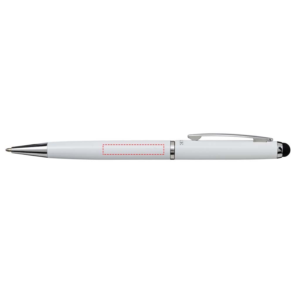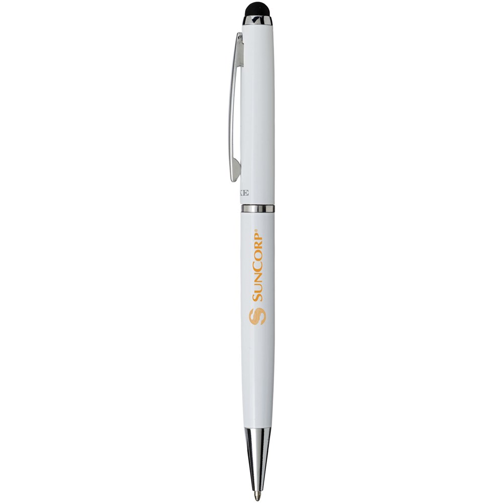 Stylus balpen met exclusief design, draaimechanisme en fluwelen zakje. Verpakt in een ''LUXE'' geschenkverpakking (grootte: 17 x 3,5 x 2 cm).