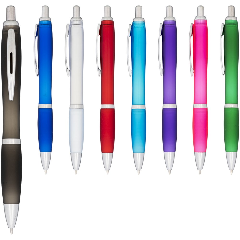 Nash-balpen met matgekleurde handgreep met kleurrijke grip. Balpen met klikmechanisme en soft...meer