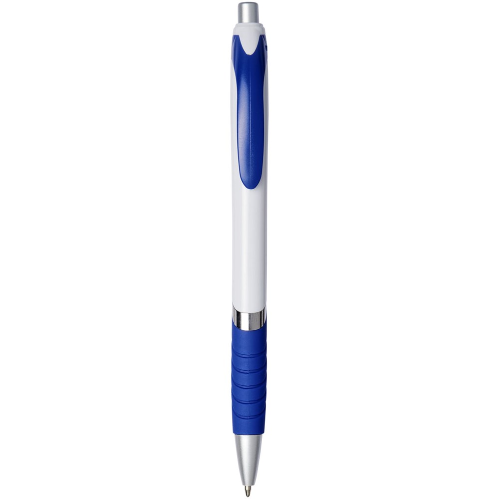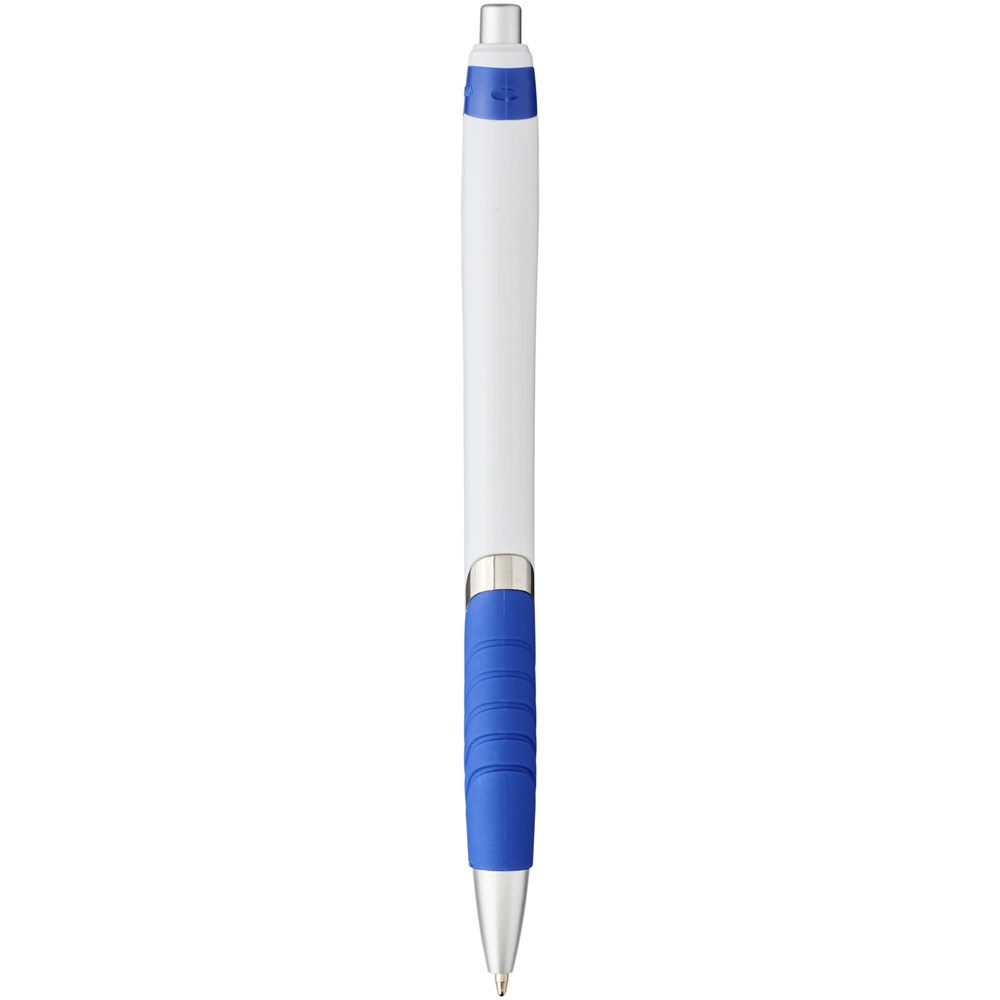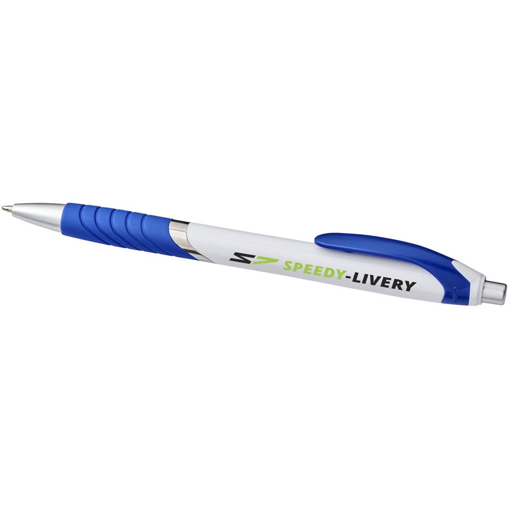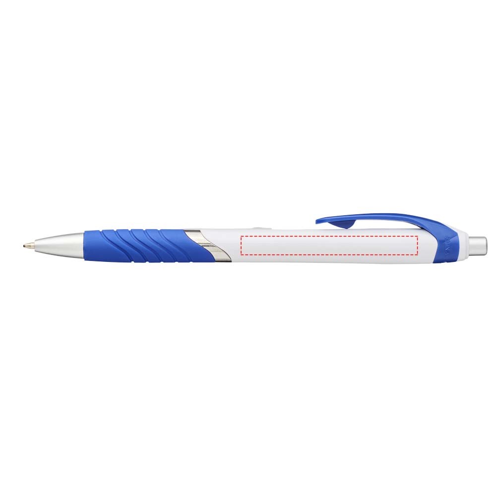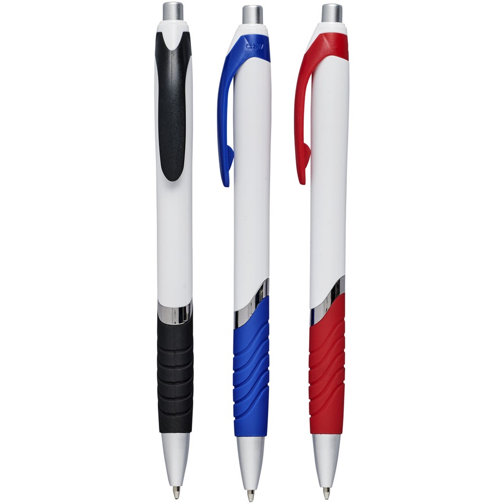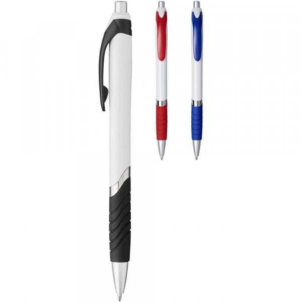 Balpen met klikmechanisme en rubberen greep. Zwartschrijvend.