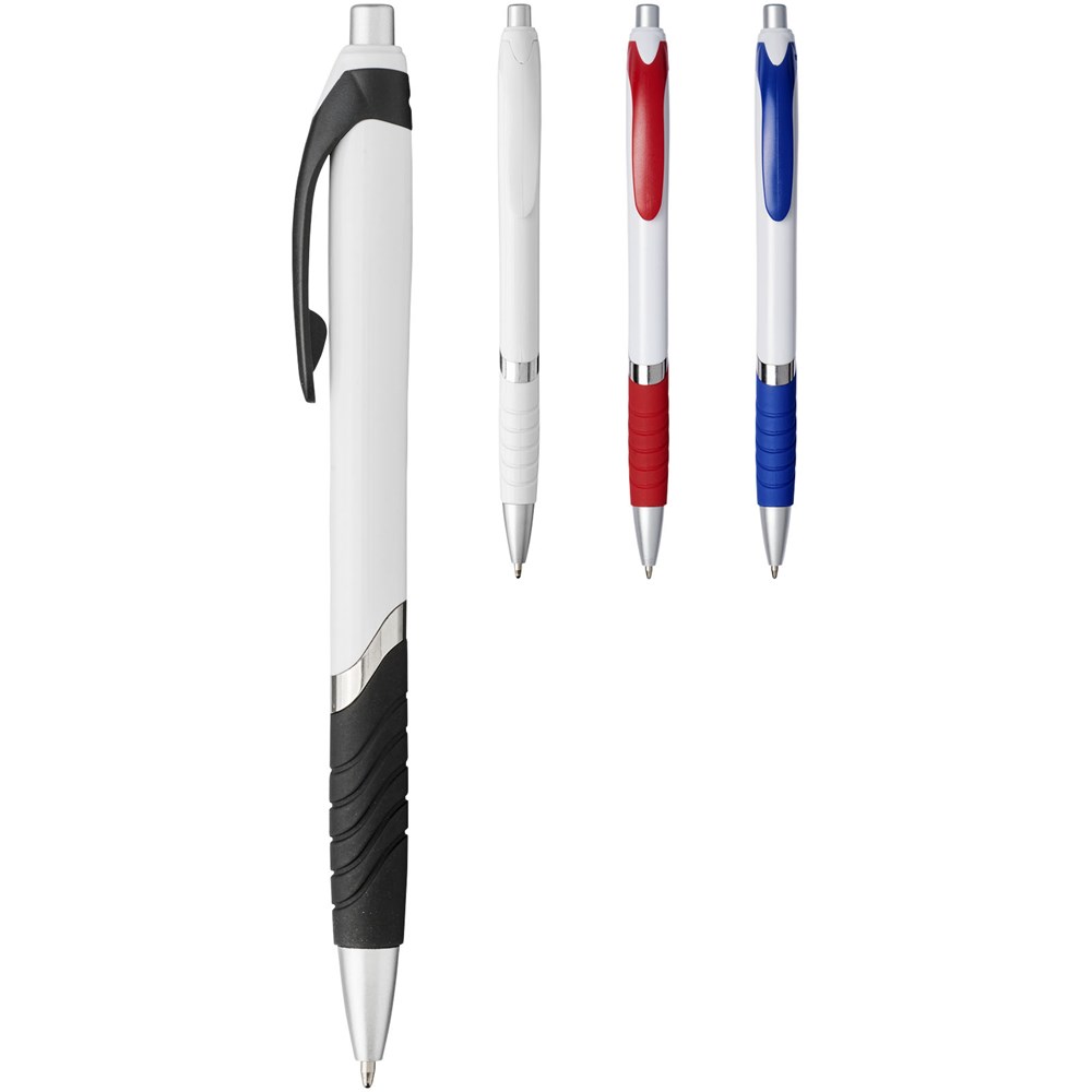 Populaire balpen met klikmechanisme en witte huls, gekleurde clip, rubberen grip en extra...meer