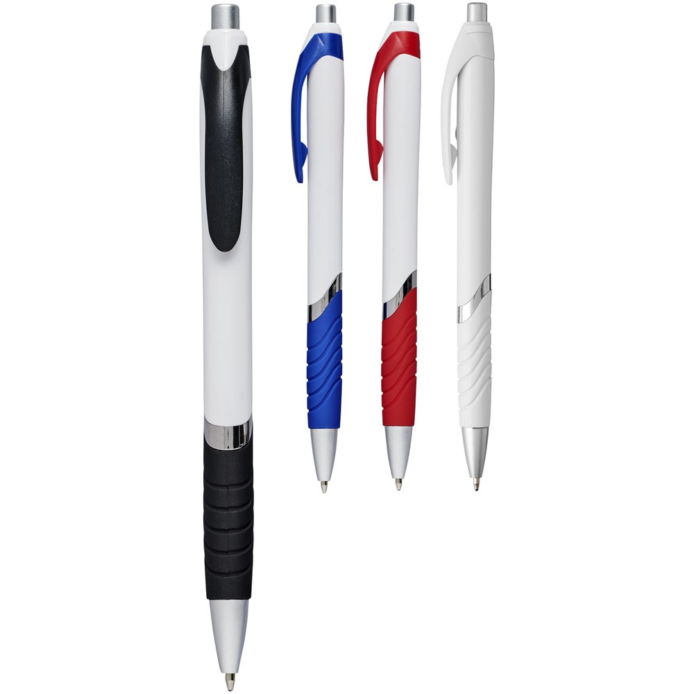 Populaire balpen met klikmechanisme en witte huls, gekleurde clip, rubberen grip en extra...meer