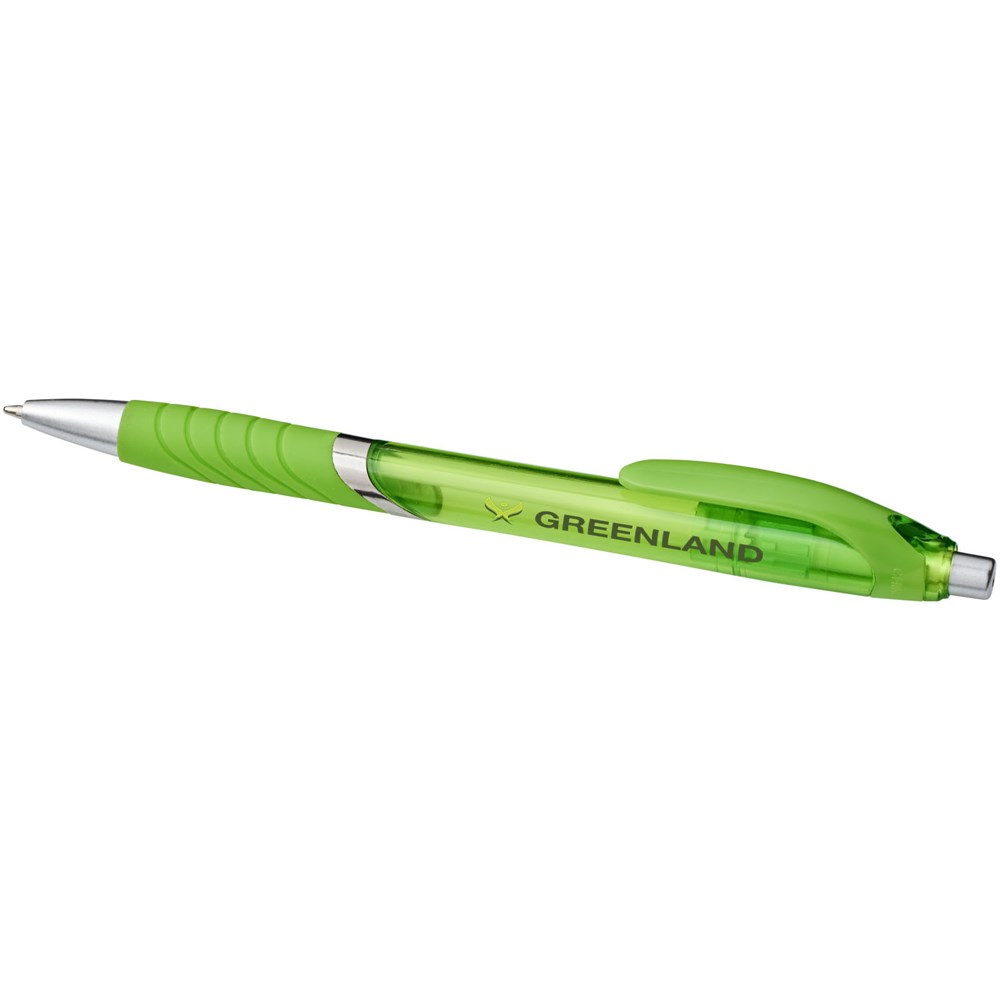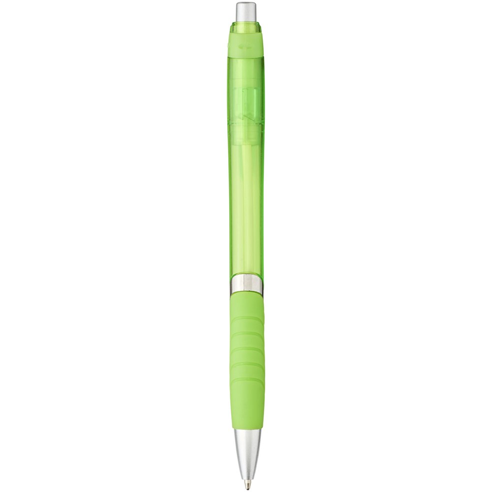 Populaire balpen met klikmechanisme en felgekleurde doorschijnende huls met bijpassende kleurenclip en rubberen grip. Verkrijgbaar in diverse aantrekkelijke kleuren.