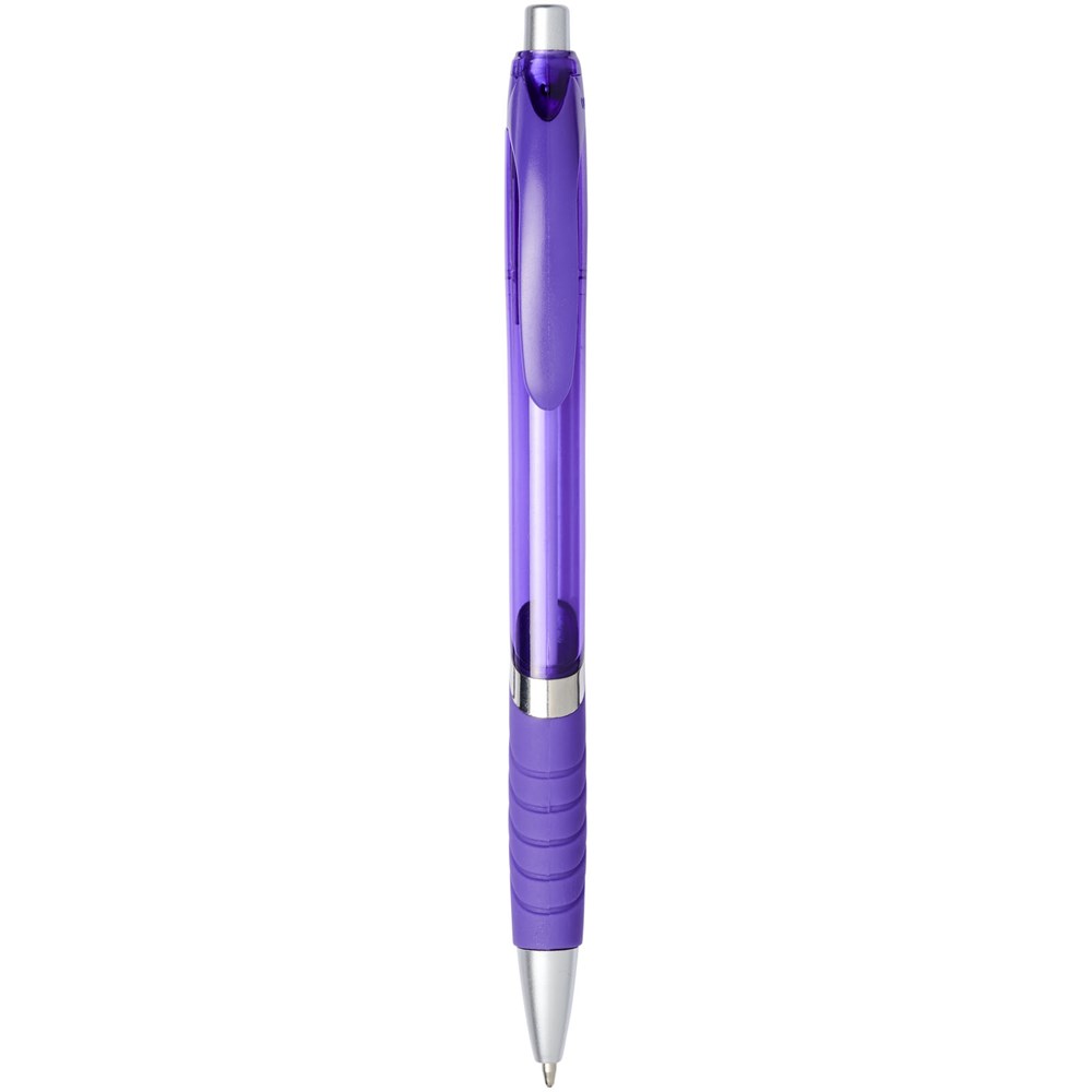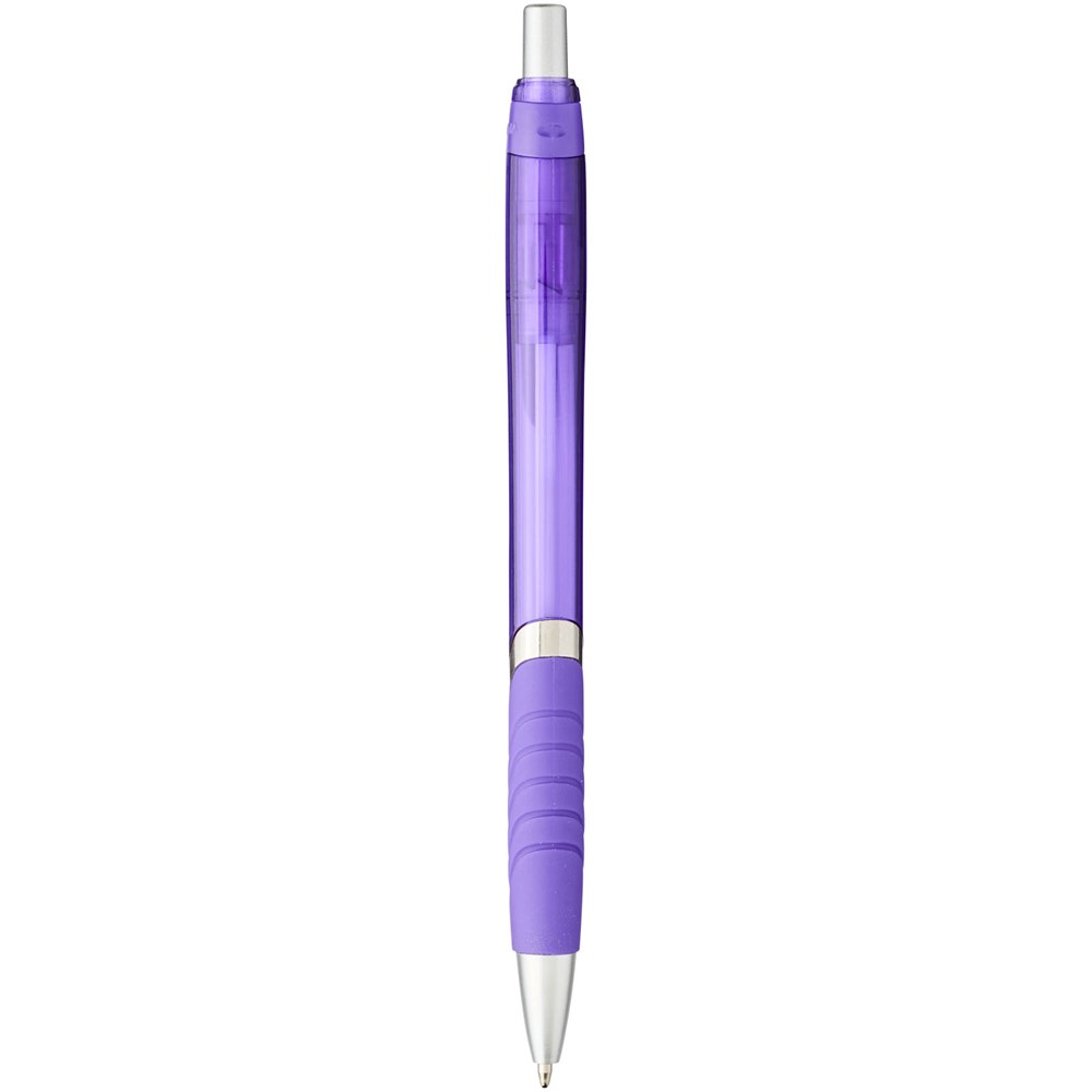 Populaire balpen met klikmechanisme en felgekleurde doorschijnende huls met bijpassende kleurenclip en rubberen grip. Verkrijgbaar in diverse aantrekkelijke kleuren.