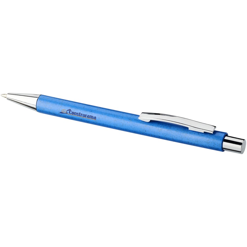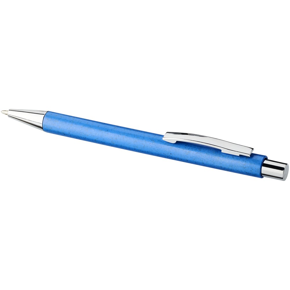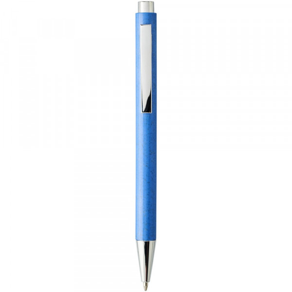 Elegante klassieke balpen met klikmechanisme, met een huls van tarwestro en afgewerkt met opvallende chroomkleurige details. Na het oogsten van de tarwekorrels blijft er tarwestro over, waardoor er minder plastic wordt gebruikt.