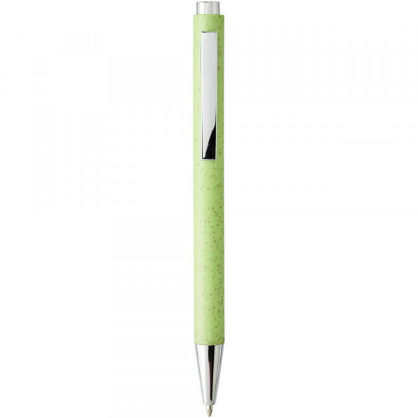Elegante klassieke balpen met klikmechanisme, met een huls van tarwestro en afgewerkt met opvallende chroomkleurige details. Na het oogsten van de tarwekorrels blijft er tarwestro over, waardoor er minder plastic wordt gebruikt.