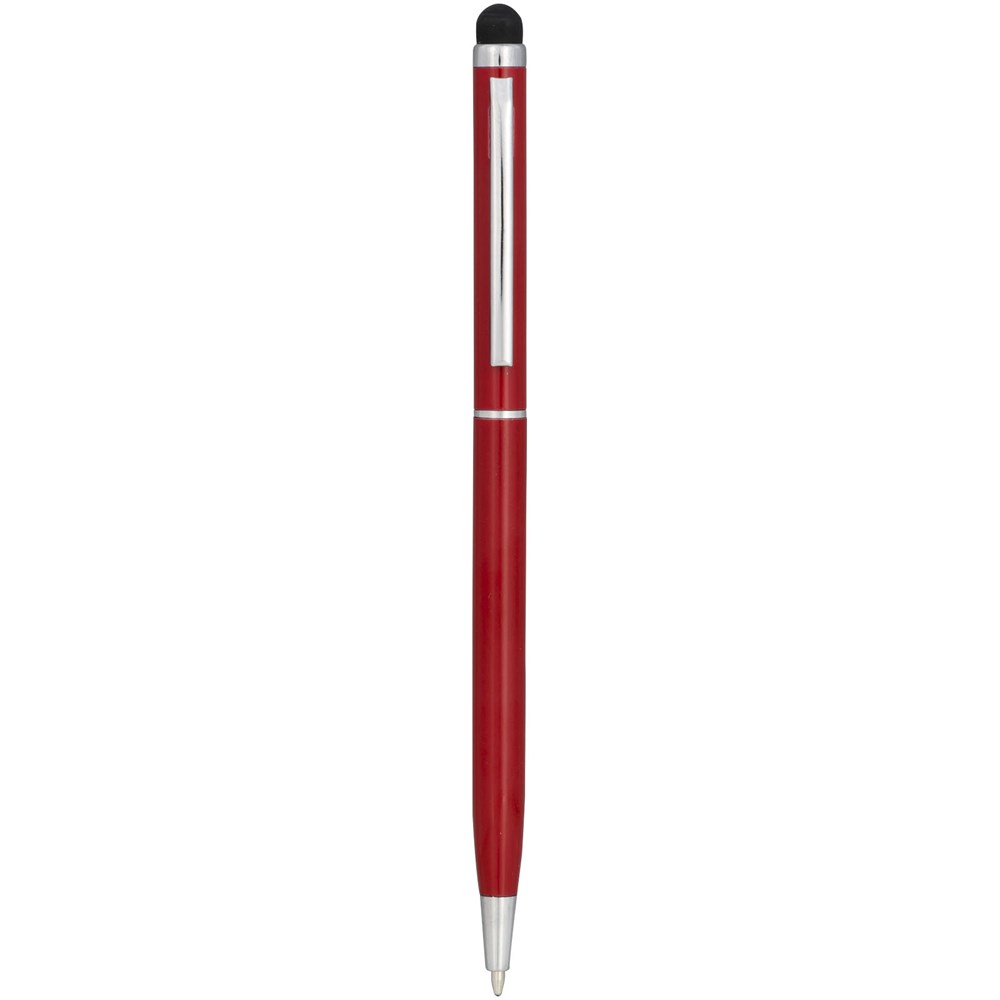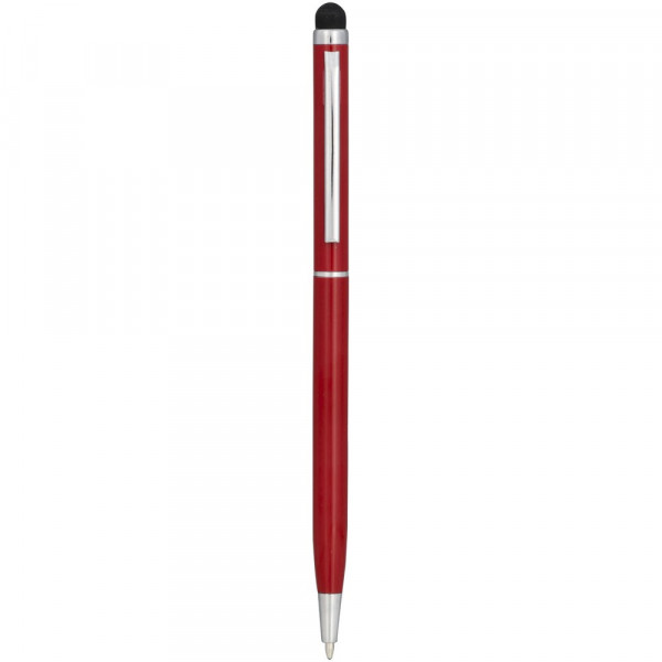 Slank vormgegeven balpen van aluminiumglazuur. Met draaimechanisme en stylus.