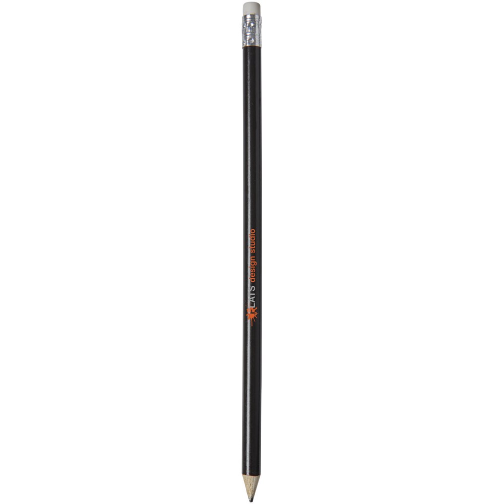 Houten potlood met een natuurlijke uitstraling and gekleurde gum. Ongeslepen.meer