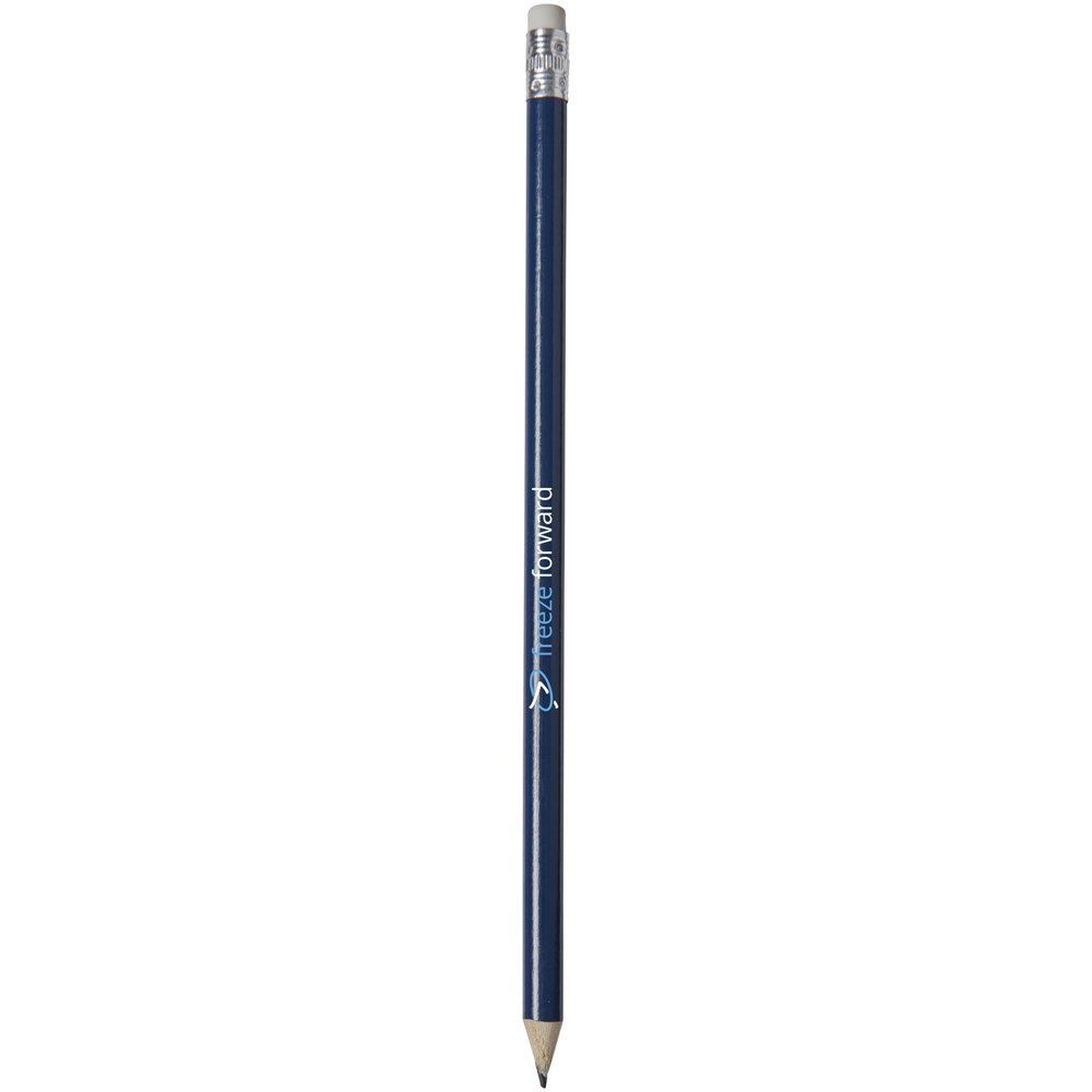Houten potlood met een natuurlijke uitstraling and gekleurde gum. Ongeslepen.