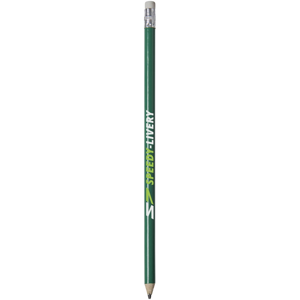 Houten potlood met een natuurlijke uitstraling and gekleurde gum. Ongeslepen.