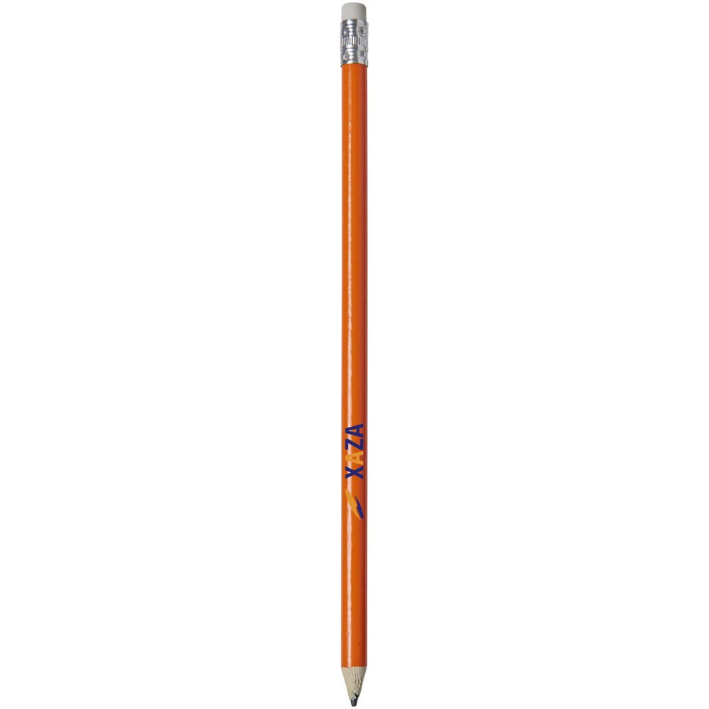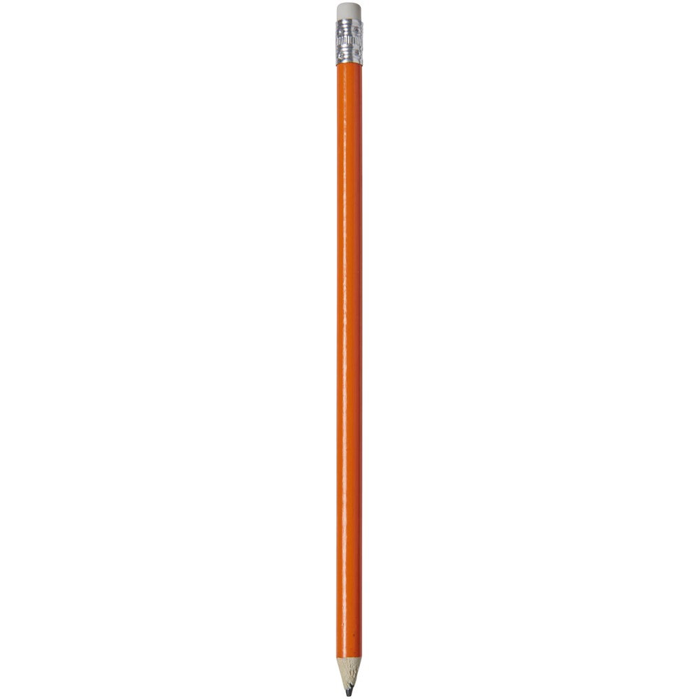 Houten potlood met een natuurlijke uitstraling and gekleurde gum. Ongeslepen.