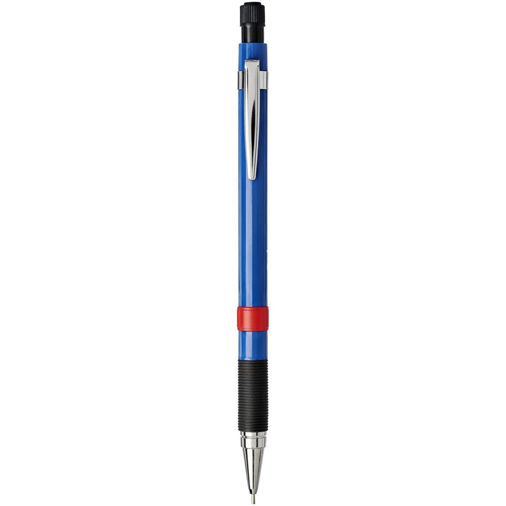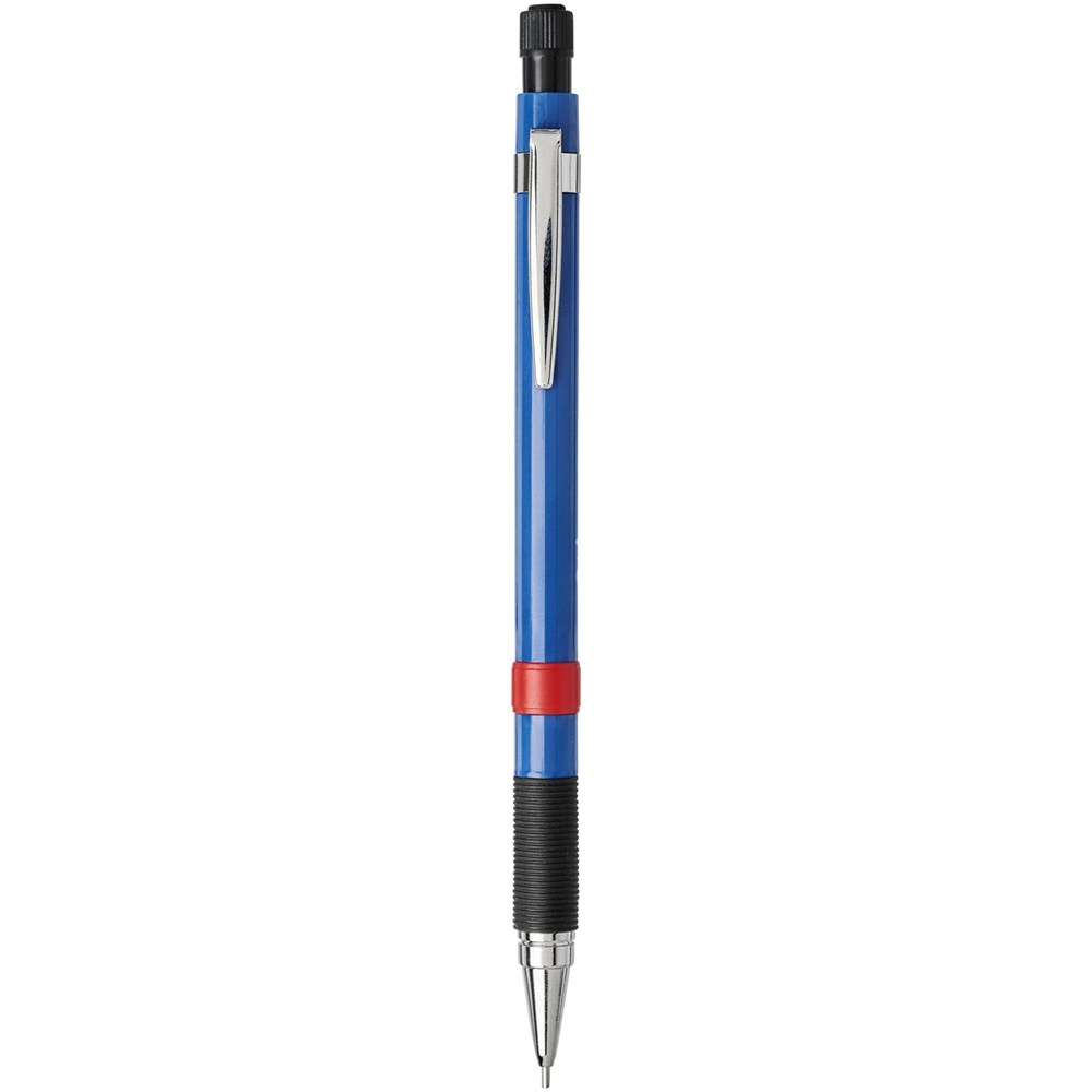 Lichtgewicht vulpotlood met rubberen greep. Voorzien van een metalen mechanisme met intrekbare stiftjes en volledig metalen neuskegel. Unieke verborgen gum met draaidop. Met stiftjes van 2B-hoogpolymeer. Stiftmaat: 0,7mm.